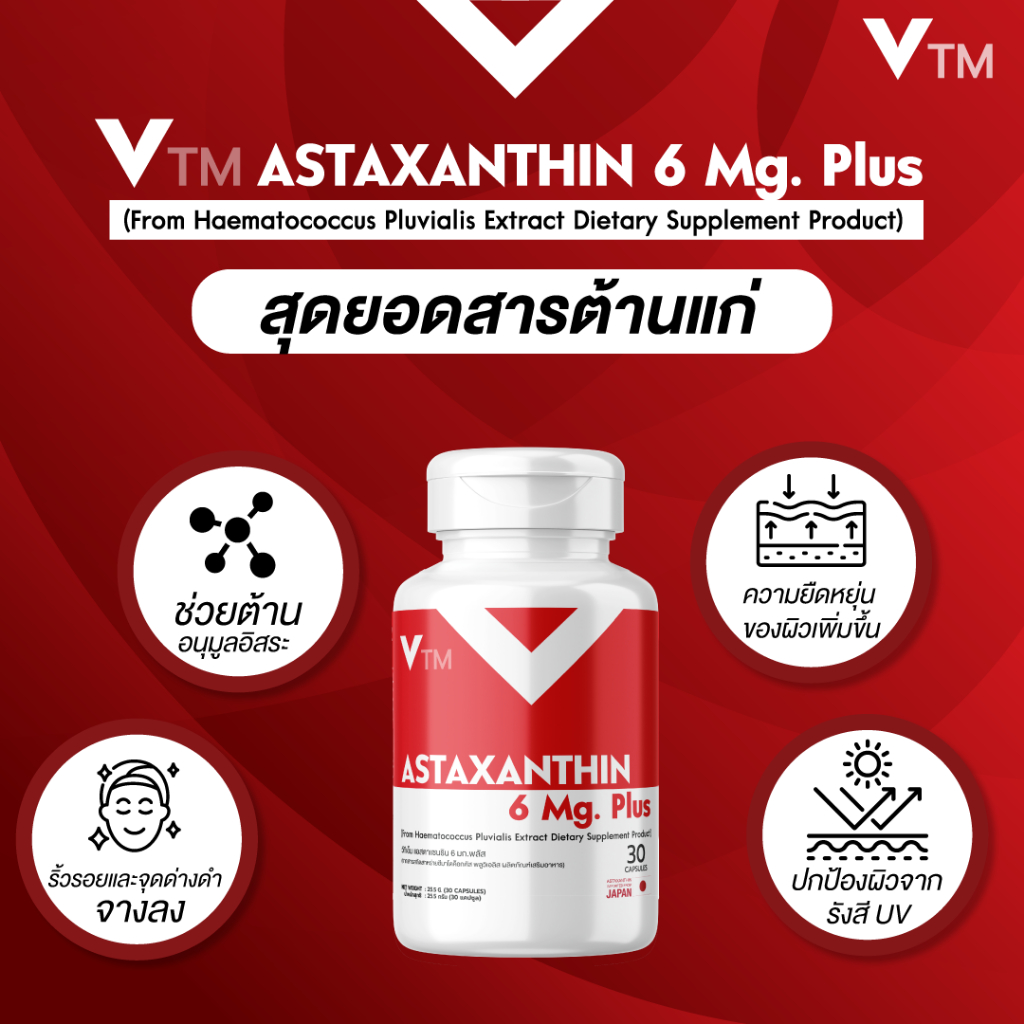 VTM Astaxanthin 6 mg. วีทีเอ็มแอสต้าแซนทีน สาหร่ายแดง ต้านอนุมูลอิสระ ชะลอวัย ผิวใส