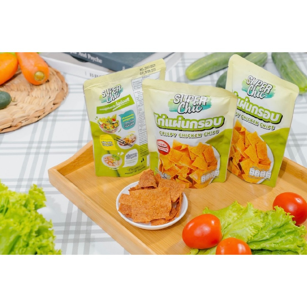 ไก่แผ่นกรอบ รสต้นตำรับ (ขนาด 18 กรัม) Crispy Chicken Chips กรอบอร่อย แคลน้อย พร้อมส่ง - Super Chic