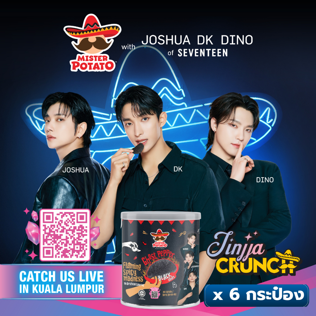 [แพ็ค 6 กระป๋อง,คละรส] Mister Potato Black Crisps Ghost Pepper แบล็ค คริสป์ โกสท์ เปปเปอร์ (ตรามิสเตอร์โปเตโต้) 40 G.
