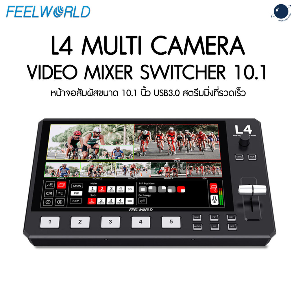 FEELWORLD L4 Multi-Camera Video Mixer Switcher 10.1" หน้าจอสัมผัส USB3.0 สตรีมมิ่ง ประกันศูนย์ไทย