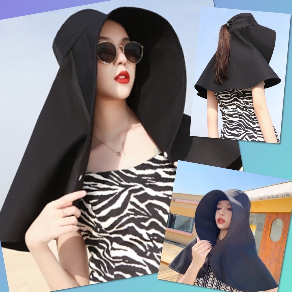 VNICE หมวกกันแดด หมวกปีกกว้าง ผ้าคลุมไหล่ กันแดดแบบ 360 องศา เนื้อผ้าแห้งไว