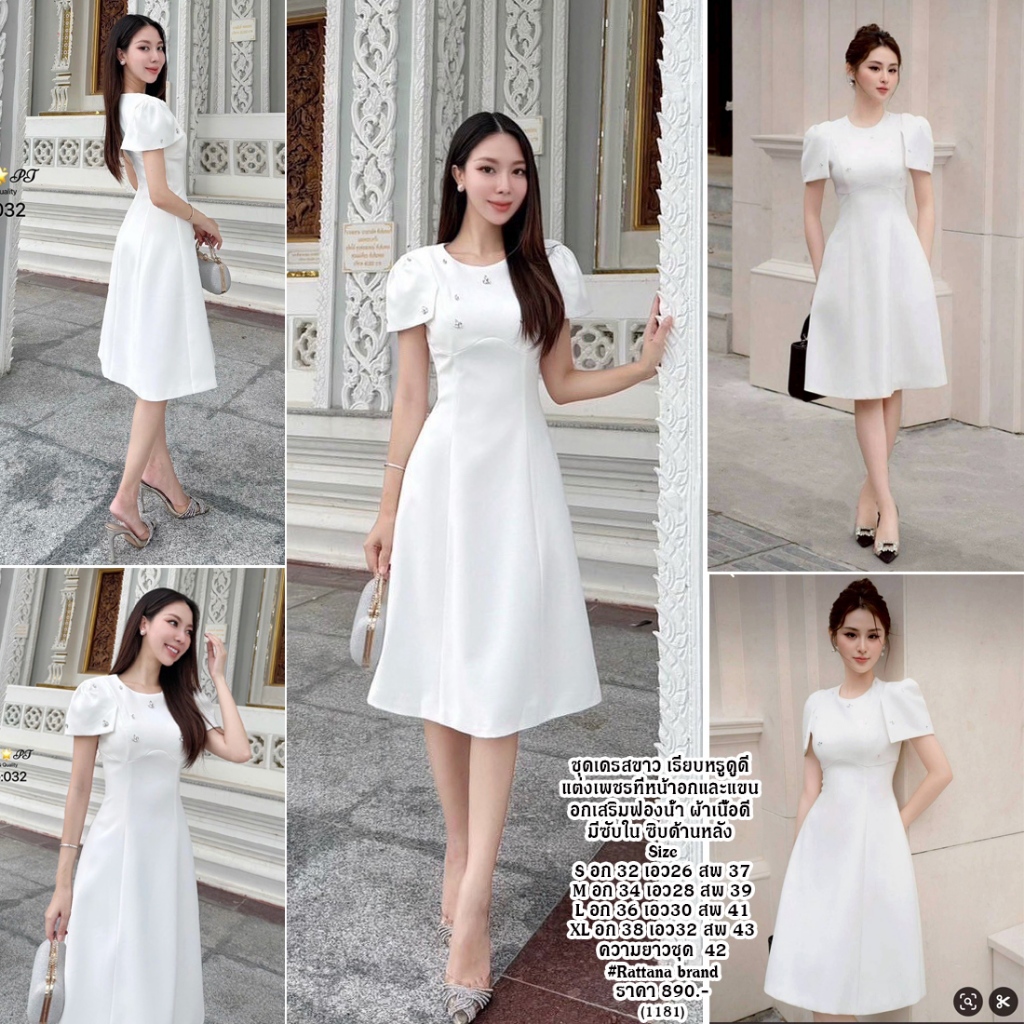 XS-XXL ชุดเดรสสีขาว ครีม ดำ ฟ้า แดง ชมพู กระโปรงทรงบาน #สไตล์เบลล่า ใส่ออกงาน,ใส่ทำบุญ