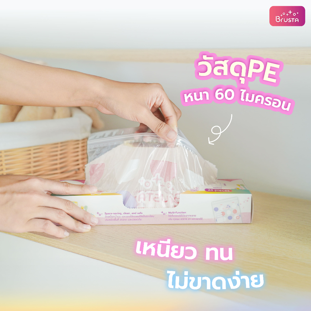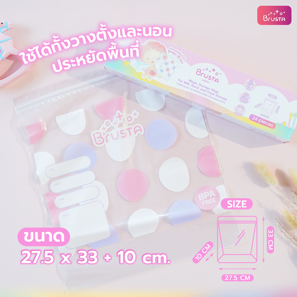 Brusta ถุงจัดเรียงถุงเก็บน้ำนม | ถุงจัดสต็อกน้ำนม แช่แข็งได้ | Double Ziplock | 24 ใบ
