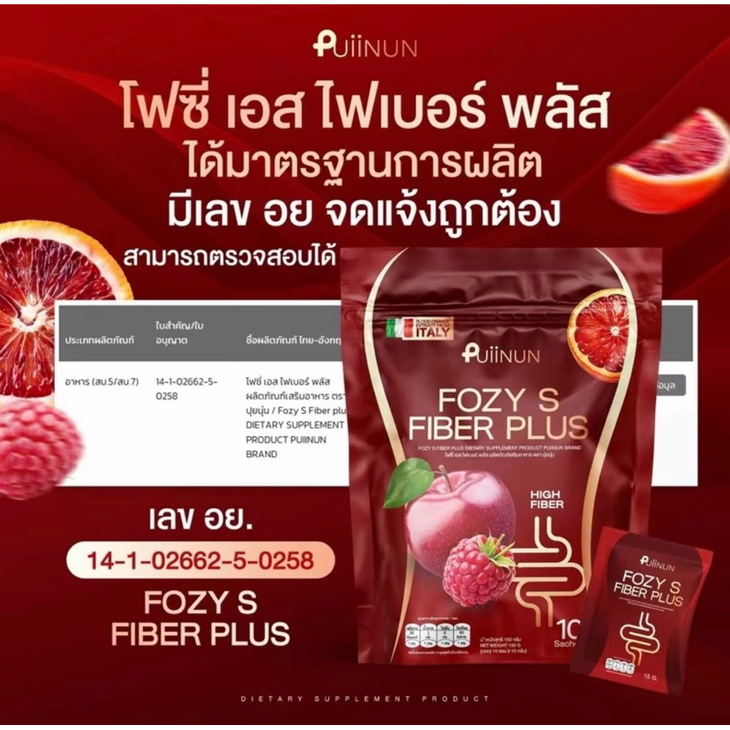 โฟซี่เอส Fozy S [📍มีใบรับรองจากแบรนด์ ] ปุยนุ่น ไฟเบอร์โฟซี่ Fozy S FIBER Plus ผลิตภัณฑ์อาหารเสริม