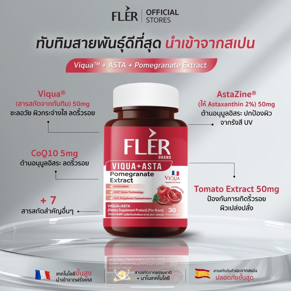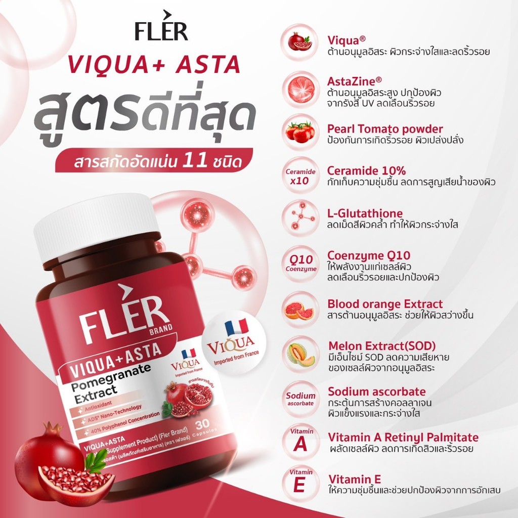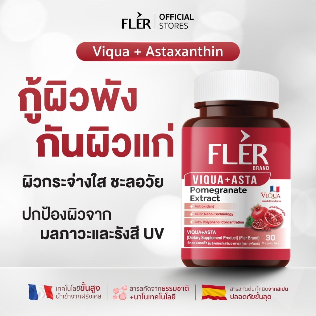 [1 แถม 1] FLER วิตามินผิวสวย Viqua (ทับทิมเข้มข้น) + Astaxanthin ชะลอริ้วรอย ลดจุดด่างดํา คืนความชุ่มชื้น