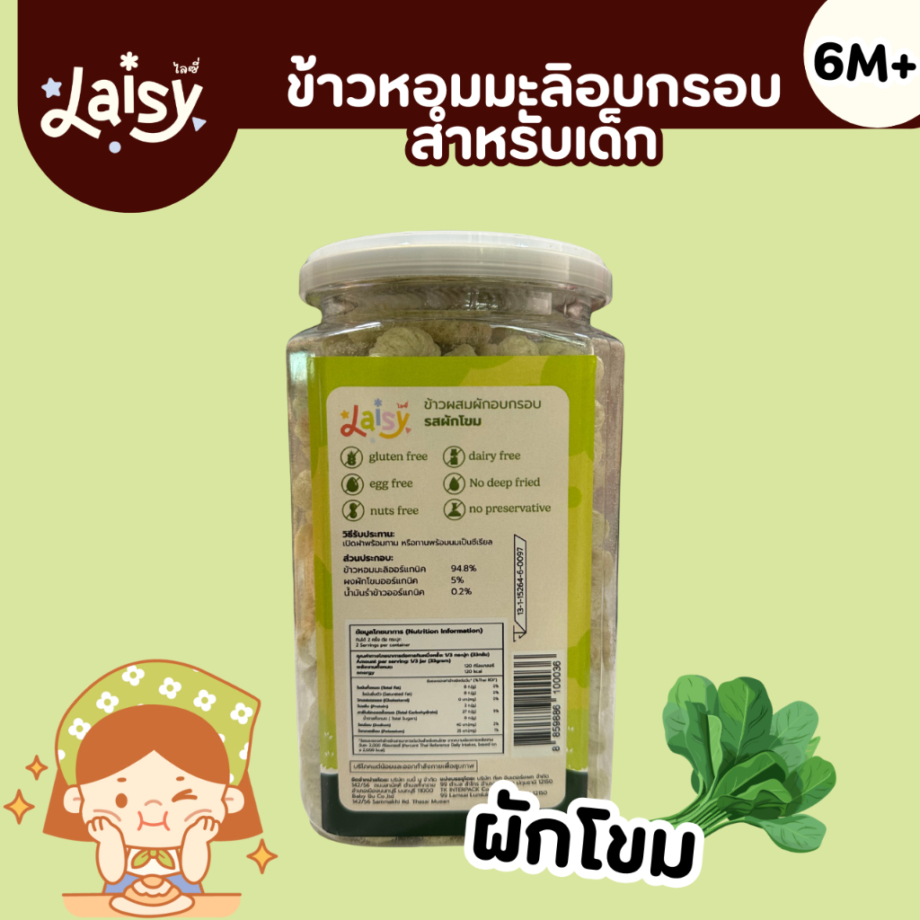 [สินค้าขายดี] ข้าวหอมมะลิอบกรอบ ออร์แกนิก 100% ไม่มีกลูเตน รสผักโขม