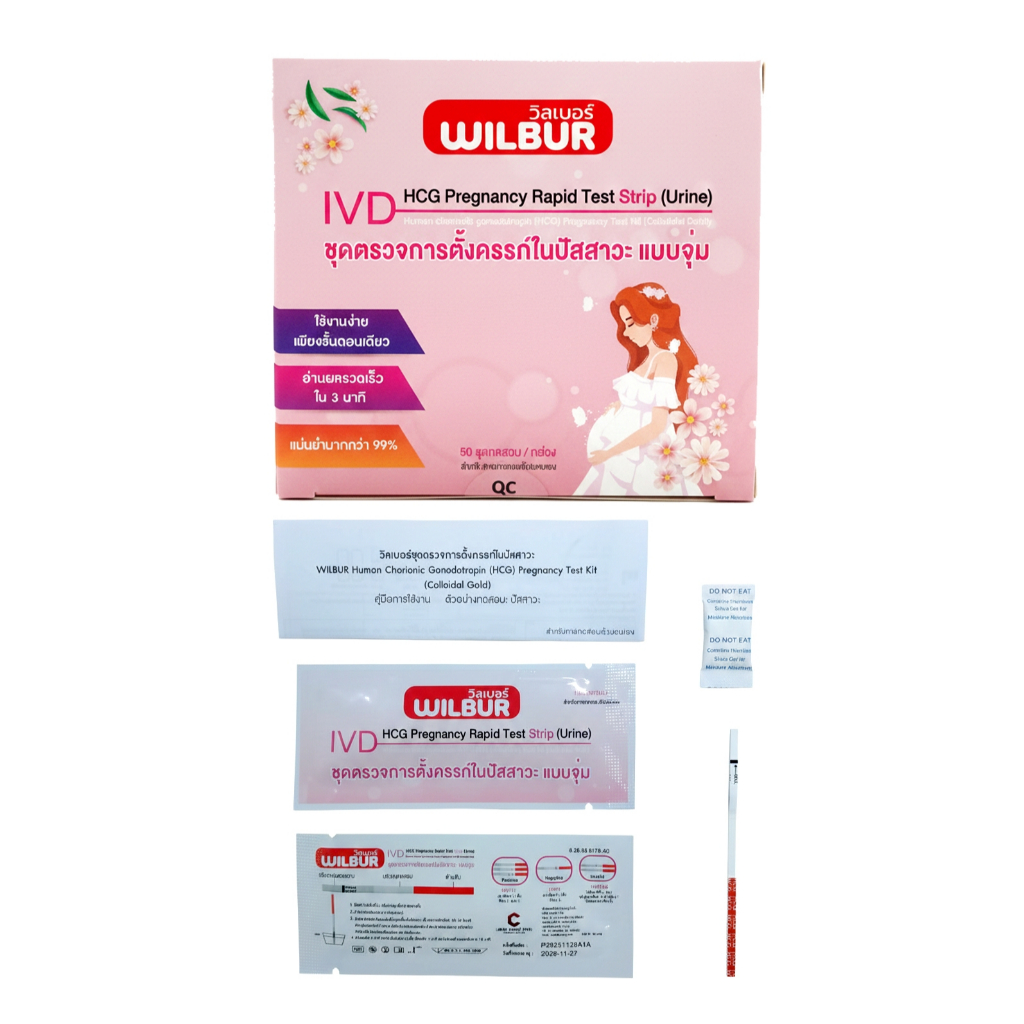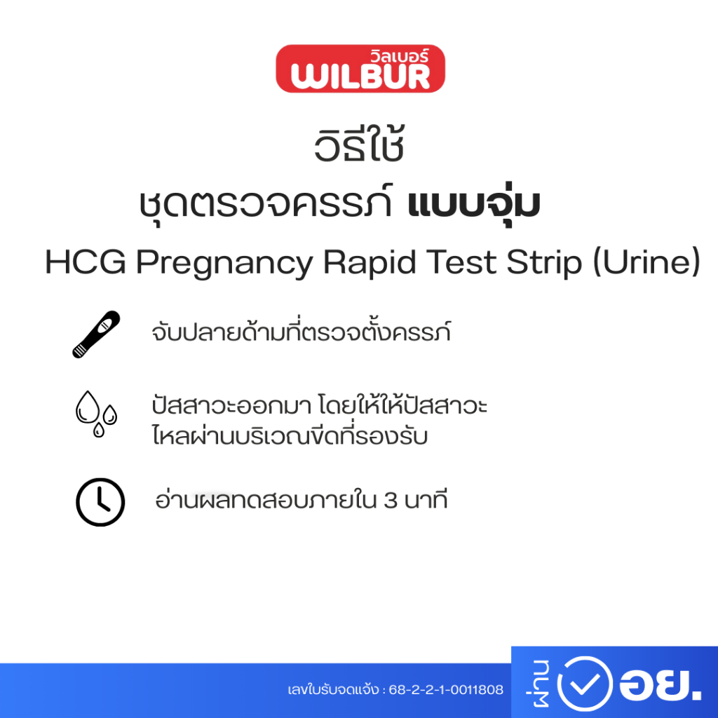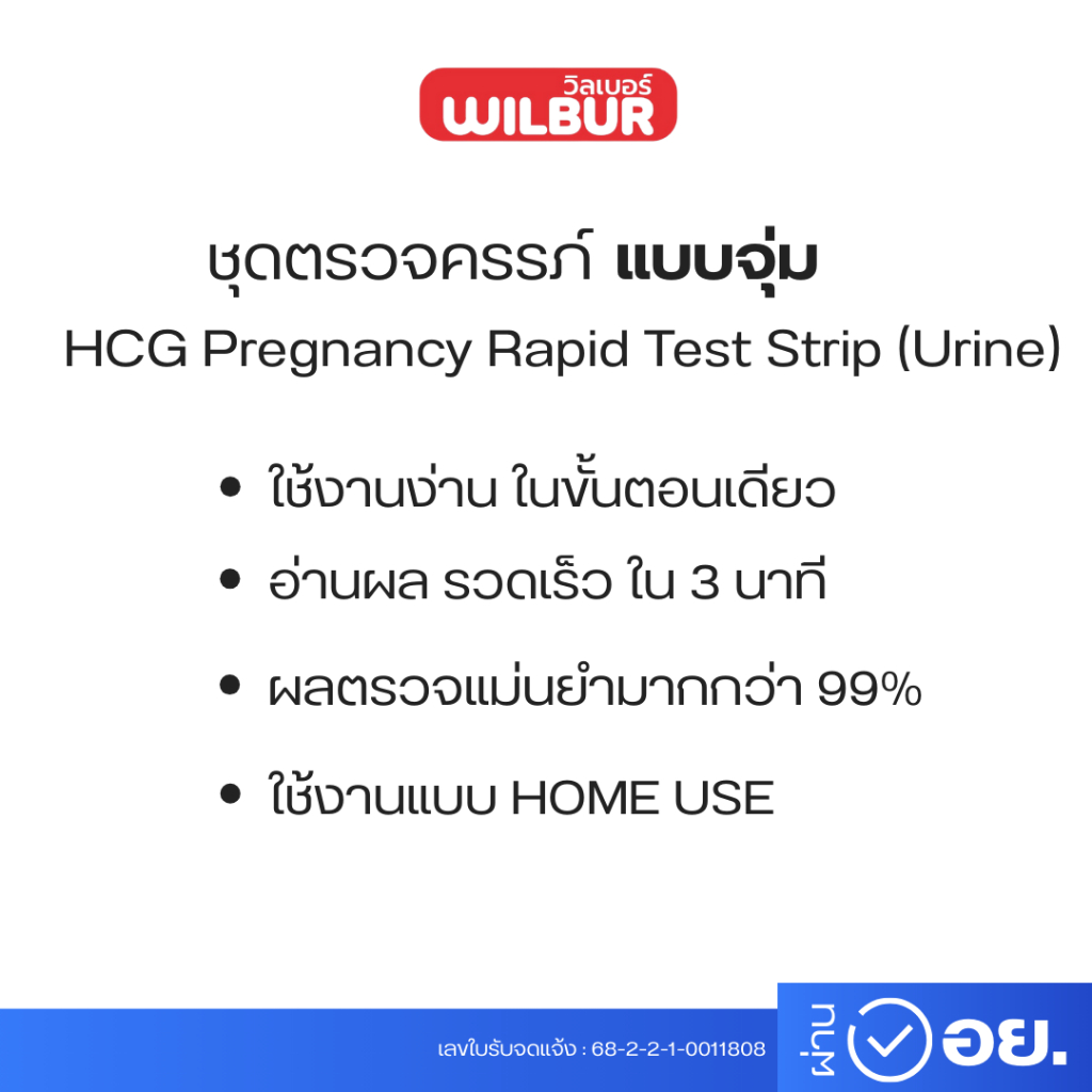 ชุดตรวจการตั้งครรภ์ WILBUR (HCG) ตรวจเเม่นยำ 99% รู้ผล 3 นาที อย.ไทยถูกต้อง แบบจุ่ม [ไม่ระบุบชื่อสินค้าบนใบแปะหน้า]