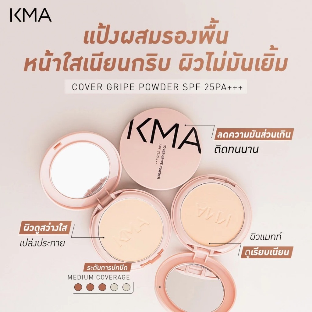KMA Cover Gripe Powder SPF 25PA+++ 11g. เคเอ็มเอ คัฟเวอร์ กริป พาวเดอร์ เอสพีเอฟ 25พีเอ+++ แป้งทาหน้าผสมสารกันแดด