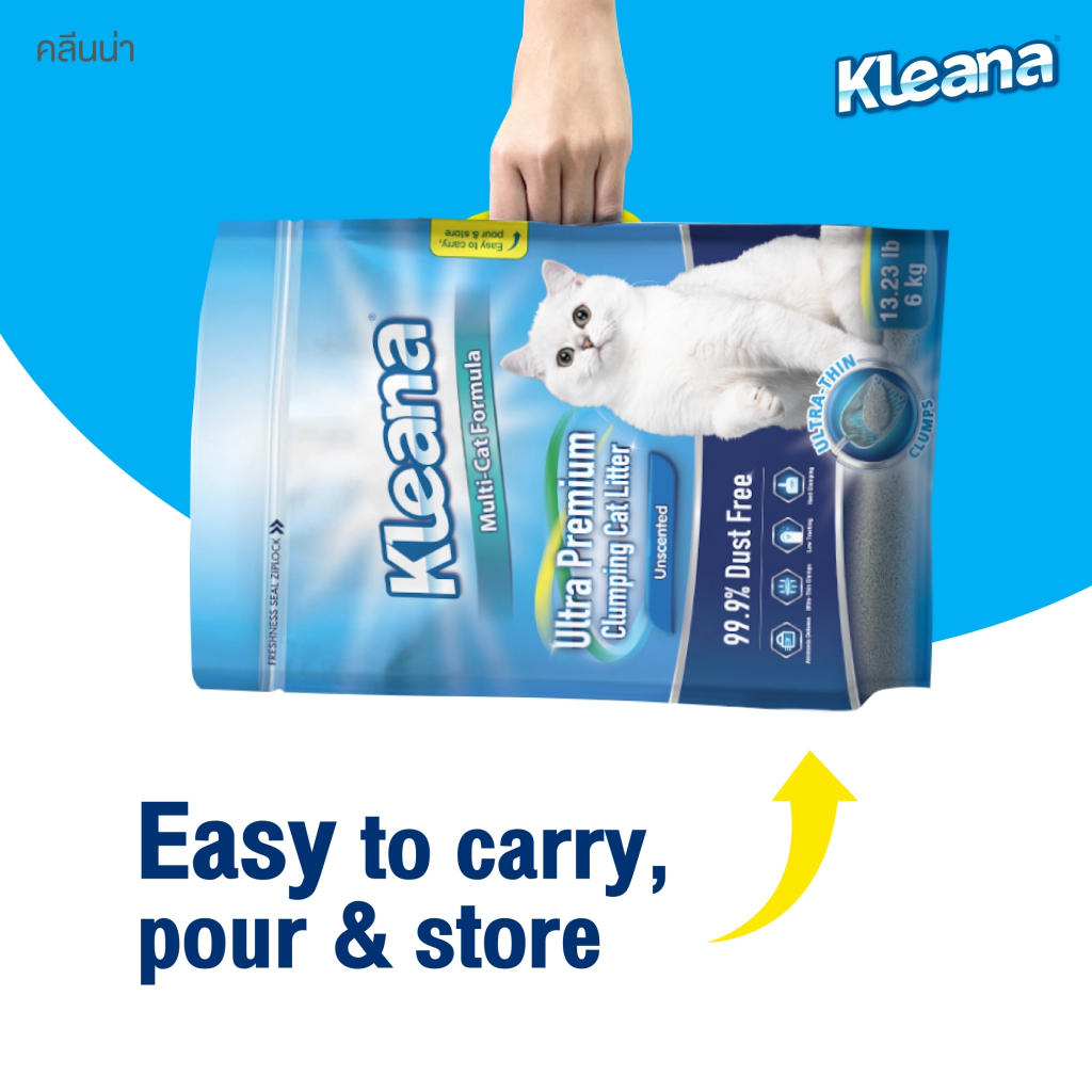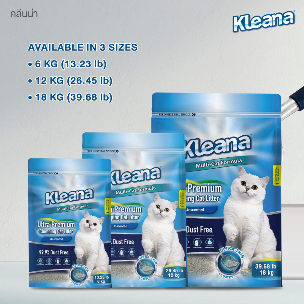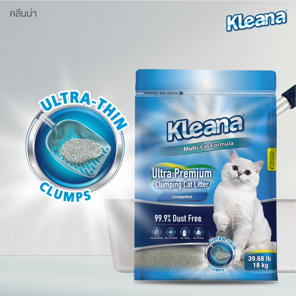 Kleana Ultra-Premium Cat Litter ทรายแมวภูเขาไฟ จับตัวเป็นก้อนแบนพิเศษ เก็บกลิ่นได้ดี เหมาะสำหรับแมวทุกสายพันธุ์