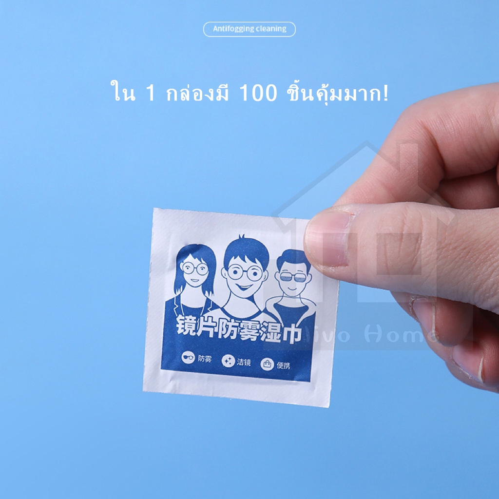 แผ่นเช็ดแว่นตา แผ่นเช็ดแว่นตากันฝ้า แผ่นเช็ดเลนสแว่น แผ่นเช็ดเลนส์ ผ้าเช็ดแว่นกันฝ้า เช็ดเลนส์ 100แผ่น กันฝุ่น Anti Fog