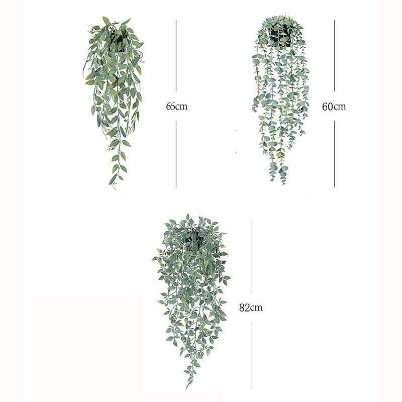 COD🍃พุ่มยูคาลิปตัสประดิษฐ์ เถาวัลย์หญ้าเทียม พร้อมกระถางต้นไม้ ใบไม้ปลอม ช่อยูคาลิปตัสติดผนัง ตกแต่งผนัง
