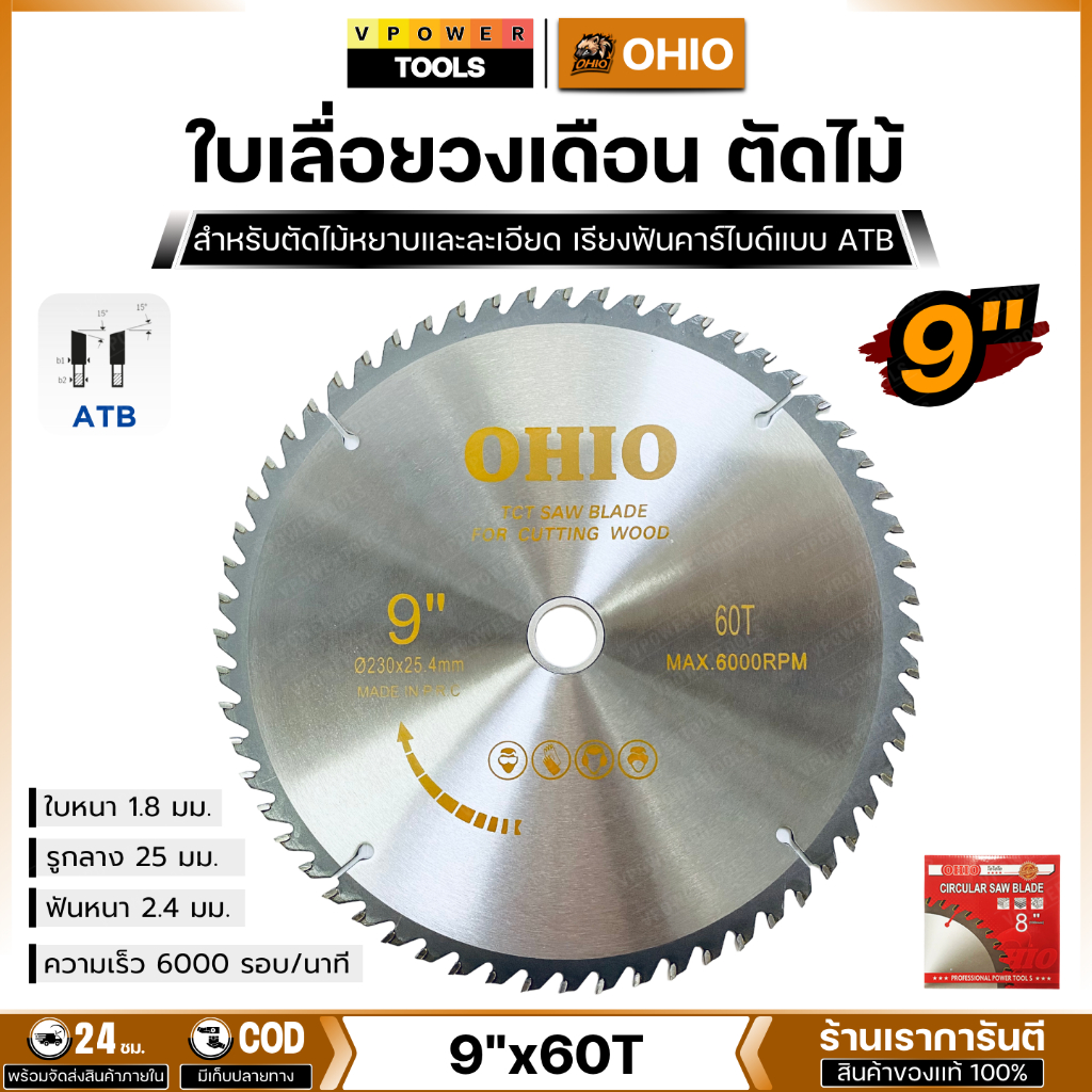 OHIO ใบเลื่อยวงเดือน ตัดไม้ 9นิ้ว ( สินค้ามีตัวเลือก )
