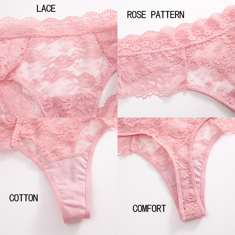 Finetoo ลูกไม้ดอกไม้กางเกงสําหรับสตรีผ้าฝ้าย Breathable Soft ชุดชั้นในต่ําเอวกางเกงสีทึบ S-XL