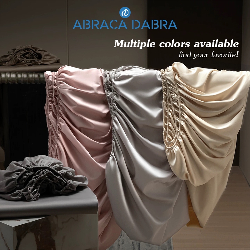 Abraca Dabra ผ้าปูที่นอนรัดมุมซาติน ผ้าปูที่นอนผ้าไหมธรรมดานุ่มพร้อมยางยืดหยุ่น (ไม่มีปลอกหมอน) 3 ฟุต/3.5 ฟุต/5 ฟุต/6 ฟุต