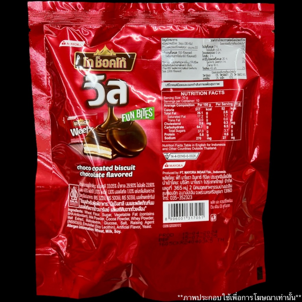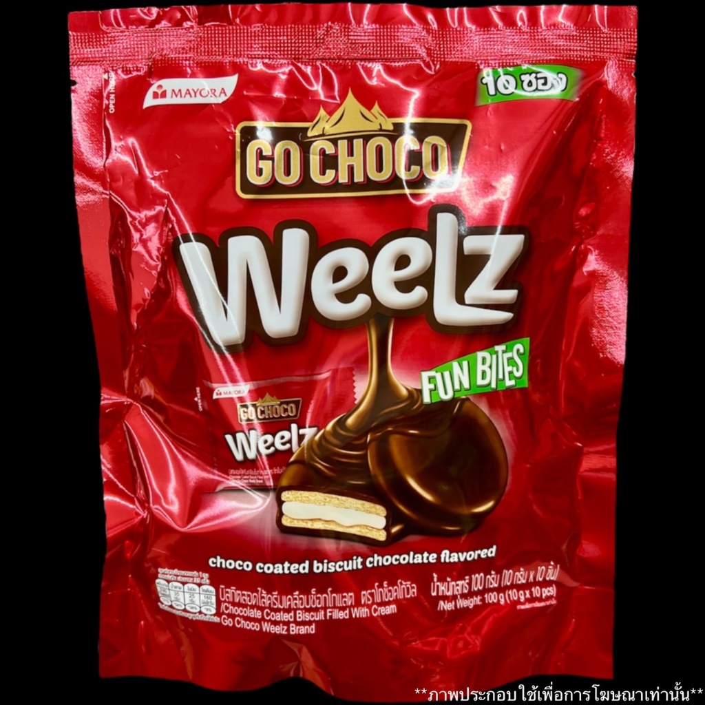 โก ช็อคโก้ วิล บิสกิต สอดไส้ ครีมเคลือบ ช็อกโกแลต 100 กรัม Go choco Weepz Biscuit cream coated with Chocolate ขนม