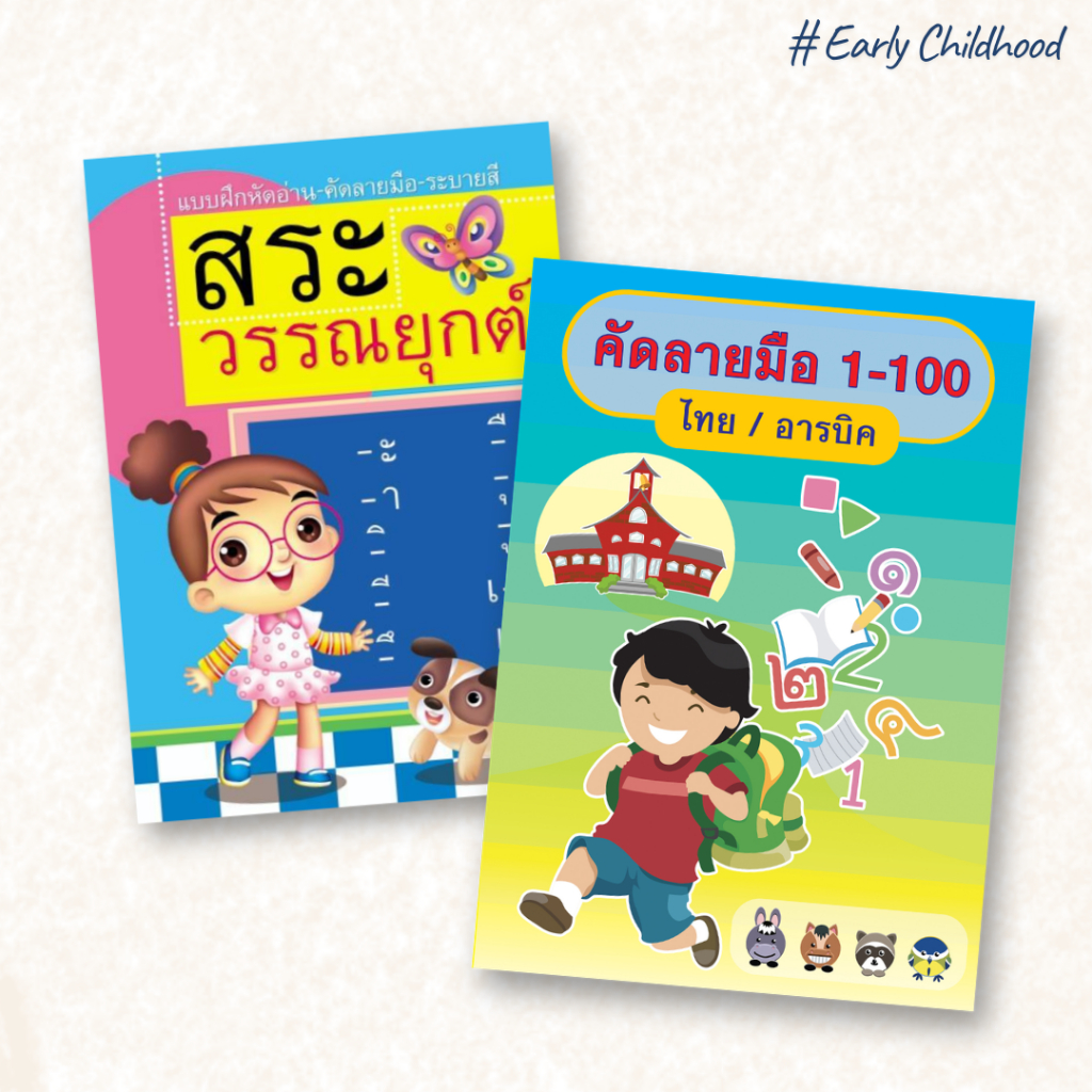 ชุด สมุดคัดลายมือเด็ก+หัดอ่าน มี 4 ชุด | ไทย อังกฤษ เลข สระ–วรรณยุกต์ เด็กอนุบาล–ประถม | 5 ขวบ+