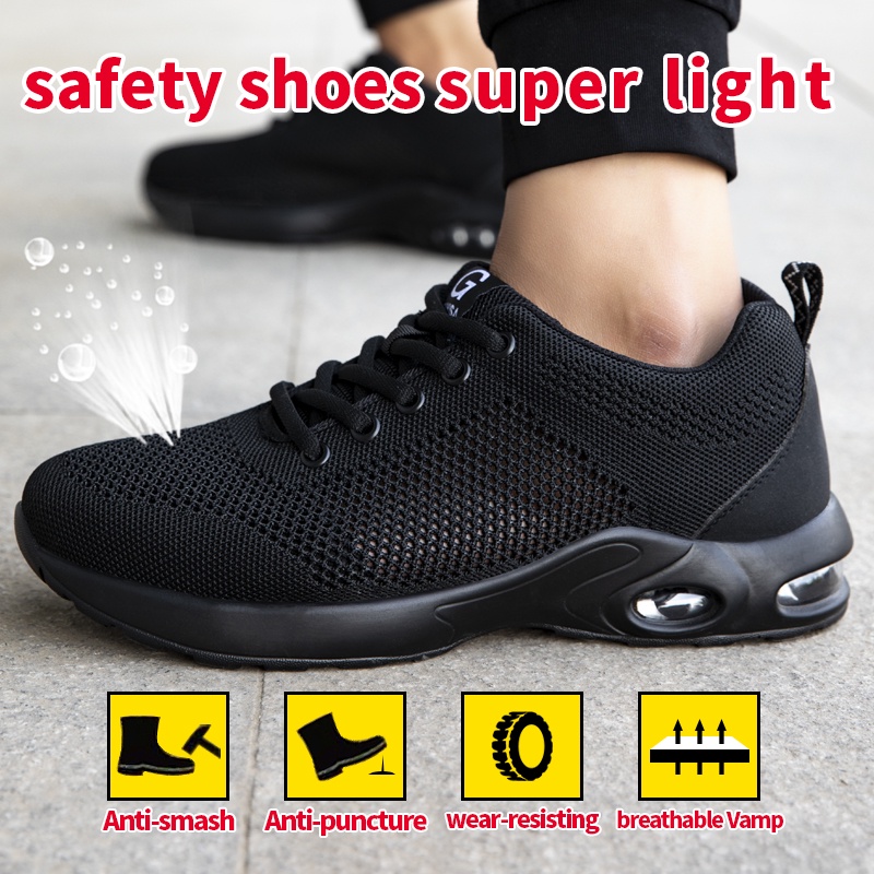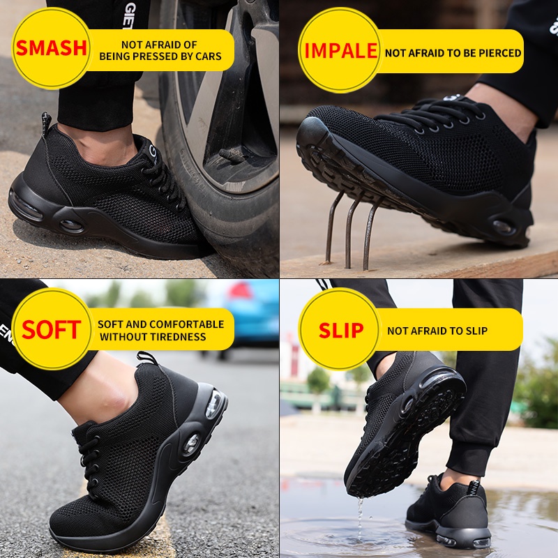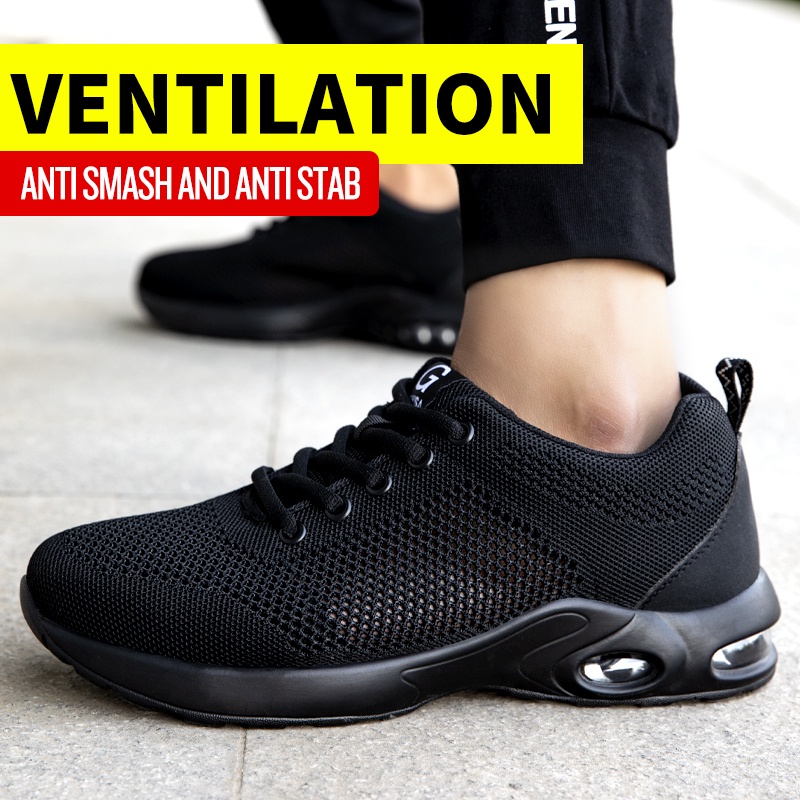 Guyisa รองเท้านิรภัยผู้ชายหัวเหล็กระบายอากาศป้องกันการกระแทกและป้องกันการแทงพร้อมสต็อก kasut ความปลอดภัย