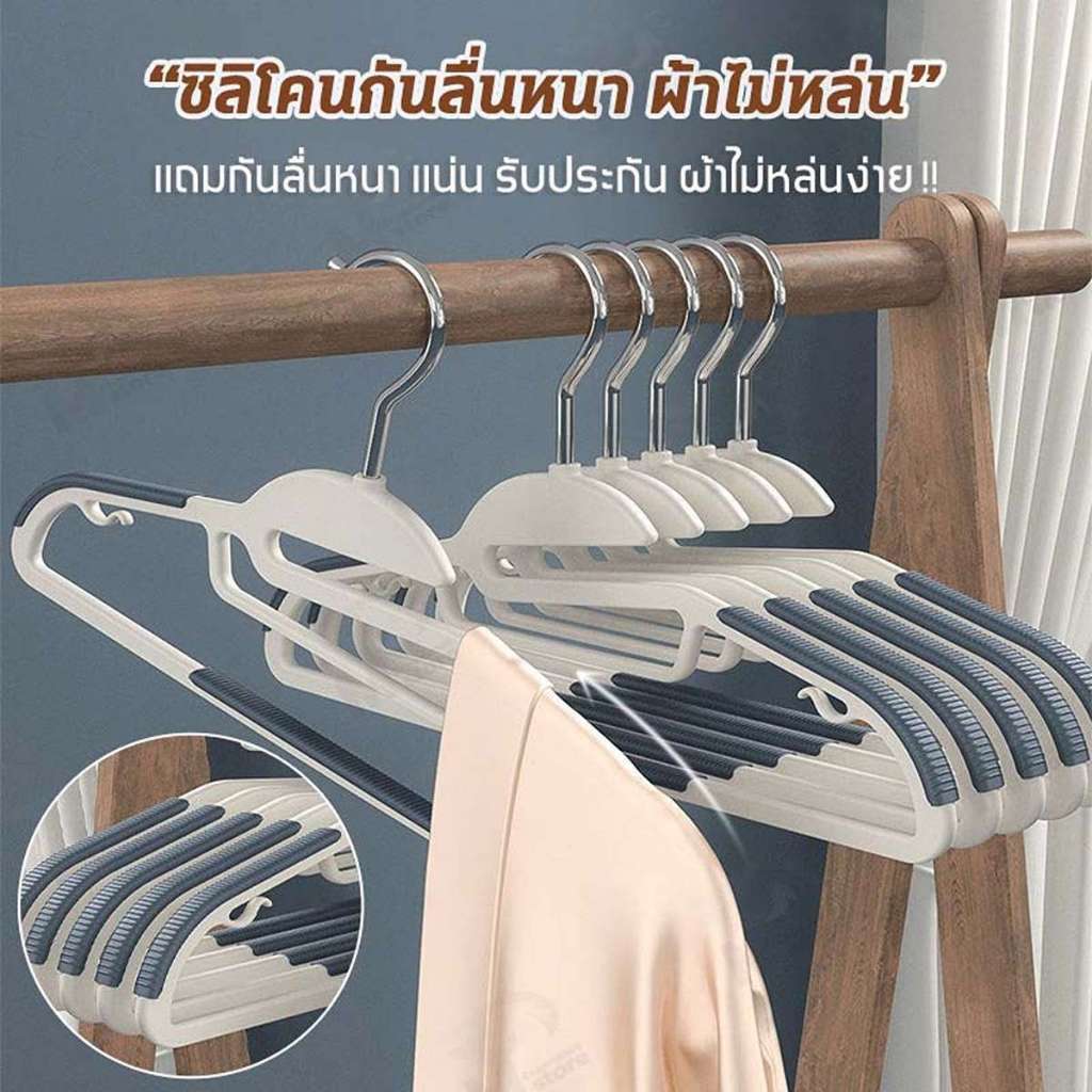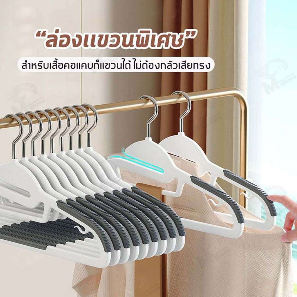 [เซตสุดคุ้ม 30ชิ้น] ไม้แขวนเสื้อพลาสติก ไม้เเขวนขอบกันลื่น แขวนผ้า กันลื่น ตะขอเเขวนสายเดี่ยว มีให้เลือก 7 สี CZ 3 Pcs