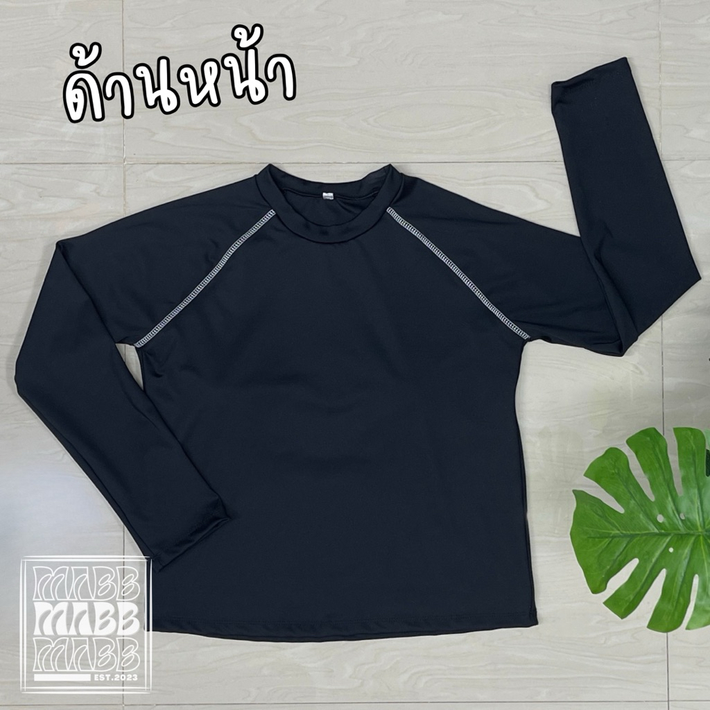 MABB - เสื้อว่ายน้ำแขนยาวผู้หญิง สีดำล้วน มีฟองน้ำในตัว มีทั้งไซส์เล็กและไซส์ใหญ่สำหรับสาวอวบอ้วน