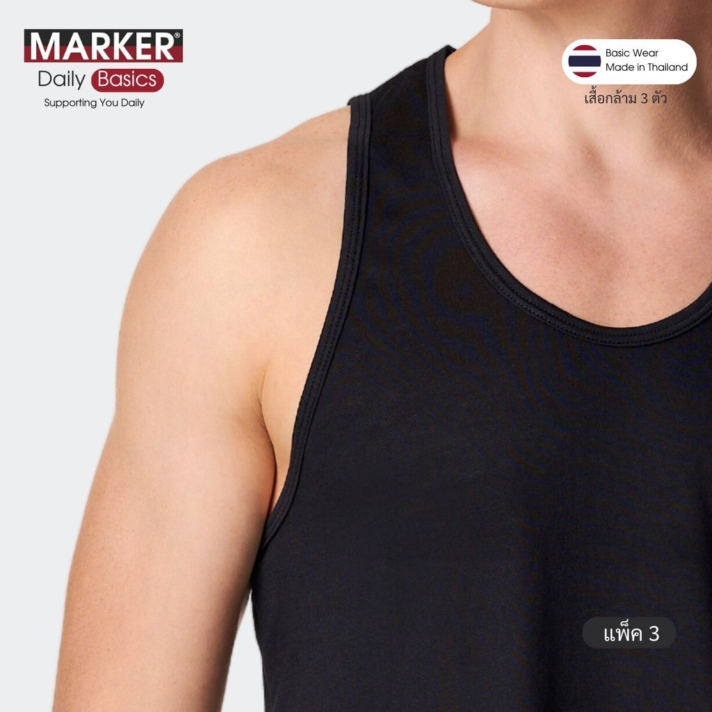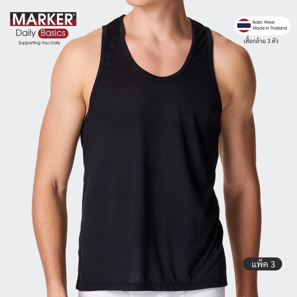 [แพ็ค 1ตัว] MARKER® เสื้อกล้ามสีดำ ผู้ชาย เสื้อตัวใน (บางพิเศษ) / 099 (107)