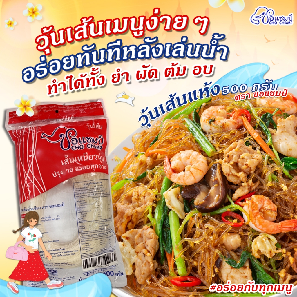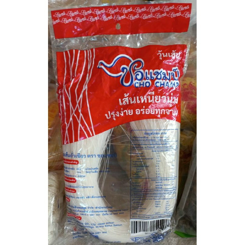 สินค้าขายดี วุ้นเส้นเหนียวนุ่ม ตราชอแชมป์ 500 กรัม 3 ซอง