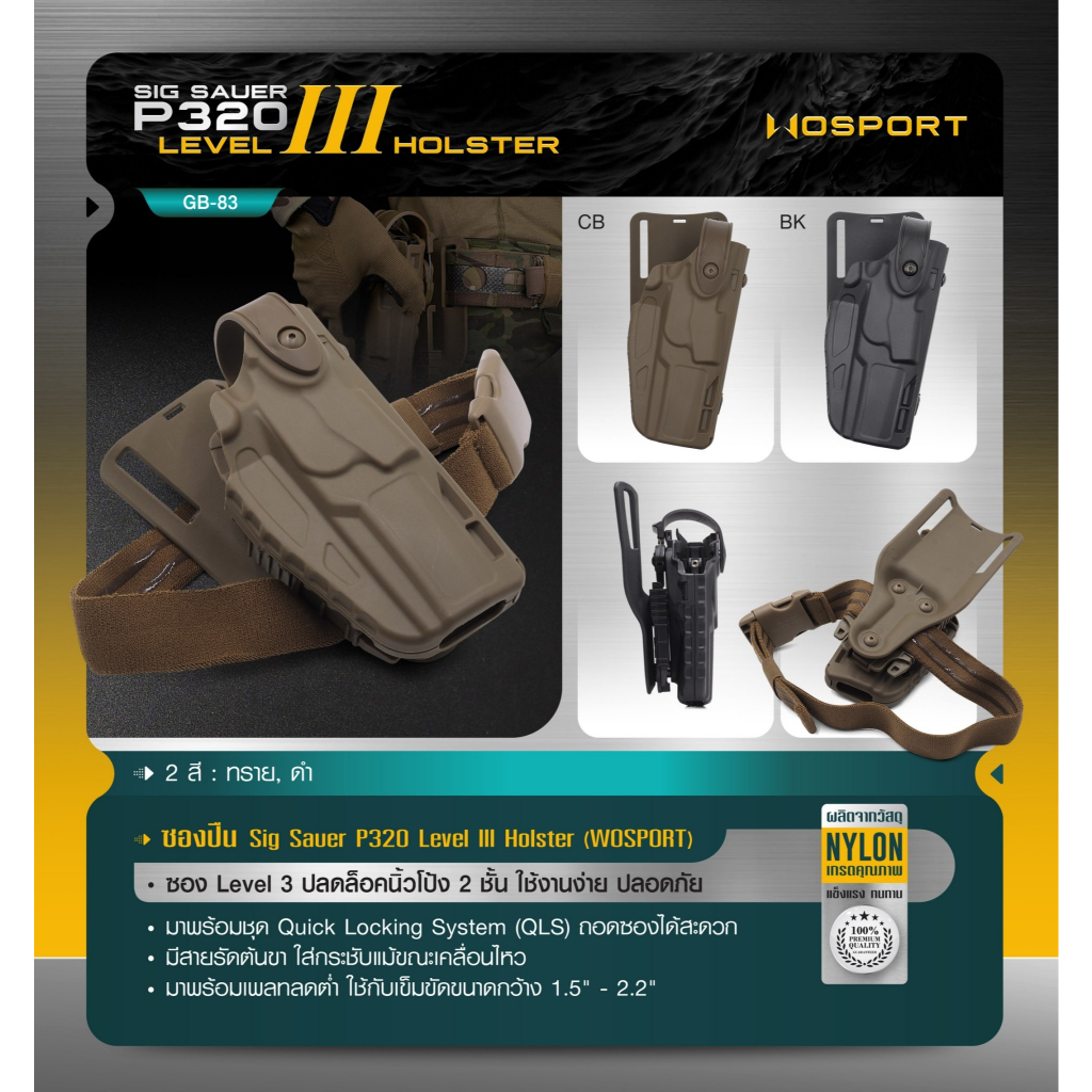 ซองปืน Sig Sauer P320 Level 3 ( WOSPORT ) + เพลทลดต่ำ