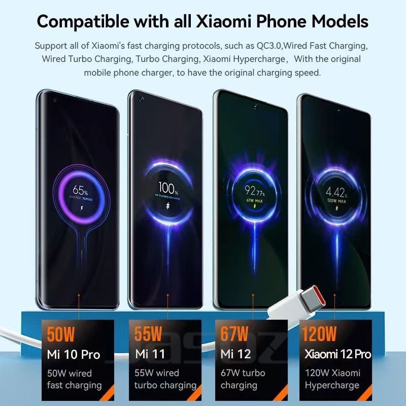 Jasoz สายชาจแบตเร็ว Type C 120W/6A Cable Fast Charging รับประกัน 1 ปี เข้ากันได้กับสมาร์ทโฟน Xiaomi