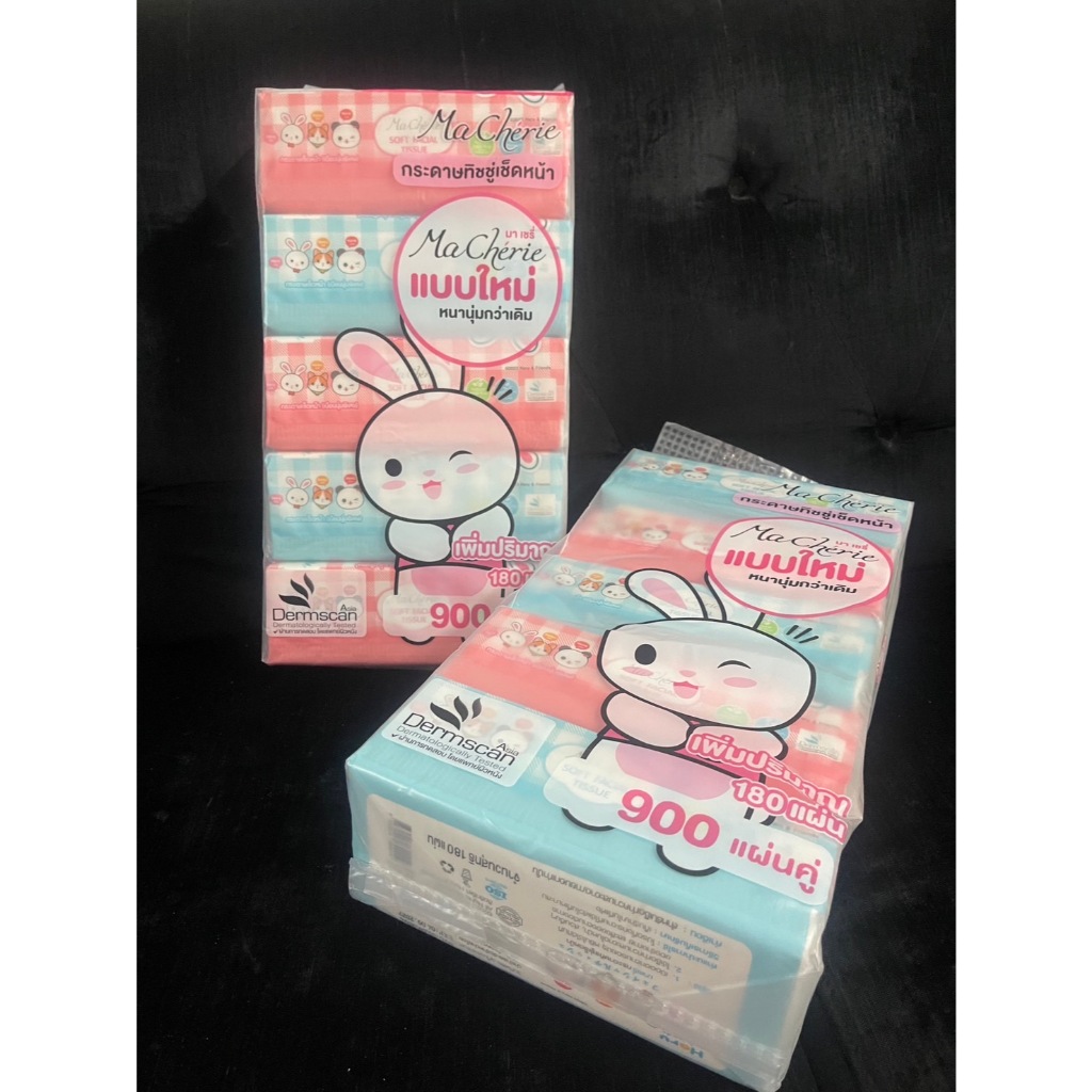 กระดาษเช็ดหน้า มาเชรี่ MaCherie ห่อละ180 แผ่น แพ็ค 5 ห่อ รวม 900 แผ่นหนานุ่ม 2 ชั้น พร้อมส่ง
