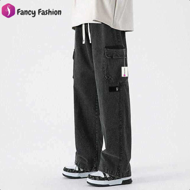 Fancy Fashion กางเกงทํางานทรงตรงผู้ชายหลวมสีทึบกางเกงลําลองกันลม