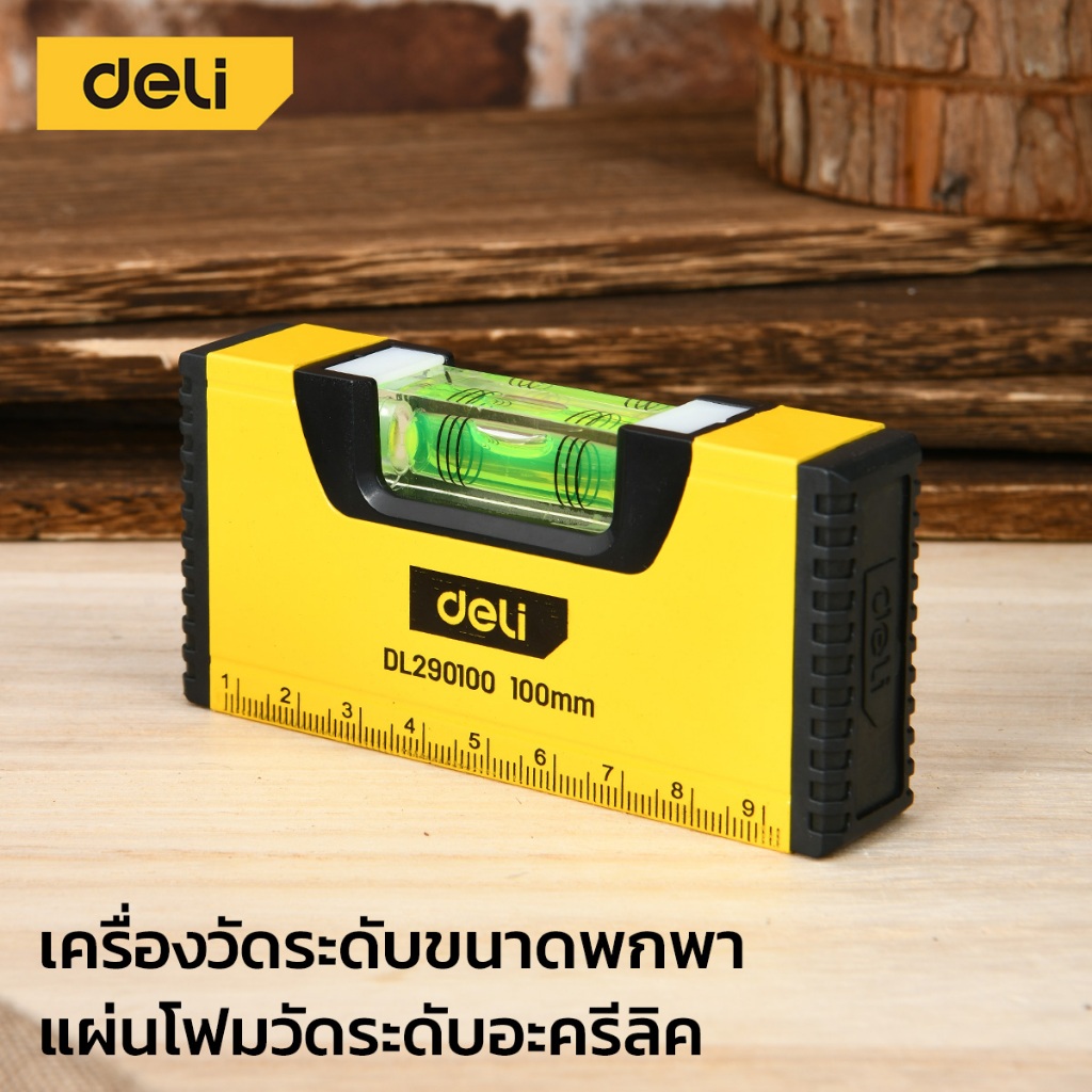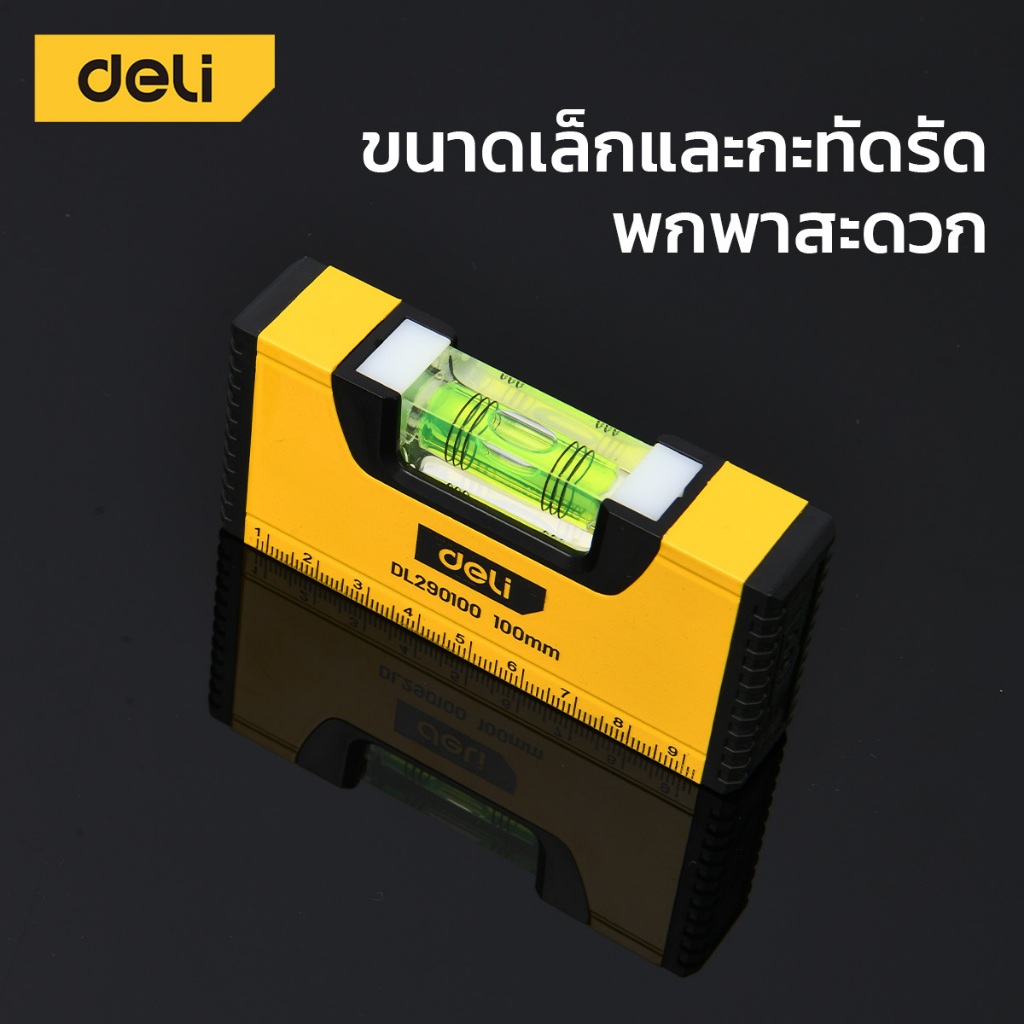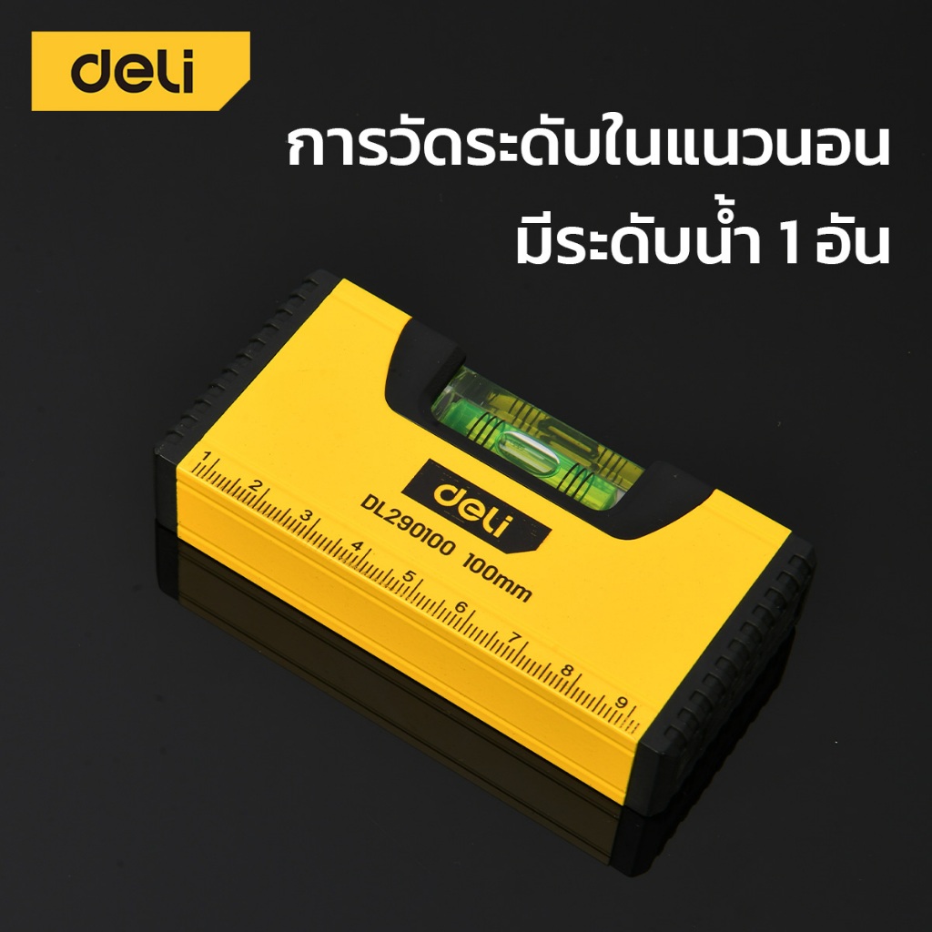 Deli ที่วัดระดับน้ำ ระดับน้ำแม่เหล็ก ฉากวัดระดับน้ำ แม่เหล็ก อลูมิเนียม 100มม Spirit Levels