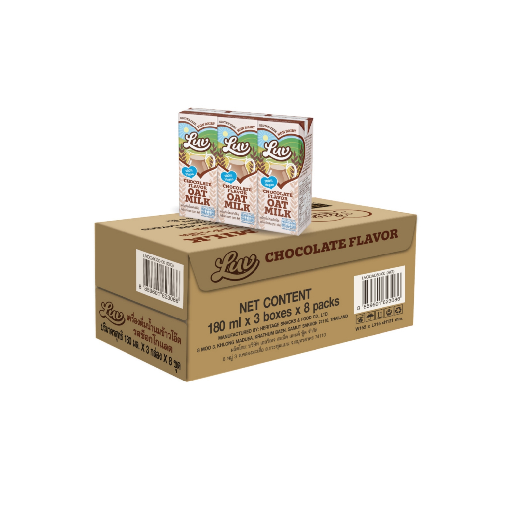 น้ำนมข้าวโอ๊ตรสช็อกโกแลต ลัฟ 180 ml.(ยกลัง) LUV Chocolate Flavor Oat Milk 180ml.Carton
