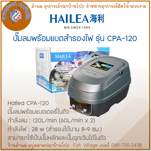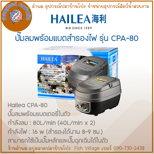 Hailea ปั๊มออกซิเจนสำรองไฟ นาน 8-9 ชม. ลมออก 2 ทาง รุ่น CPA-80,CPA-120 เป็นปั๊มหลัก หรือ ใช้ขนส่งปลา มีอะไหล่ แบตเตอรี่