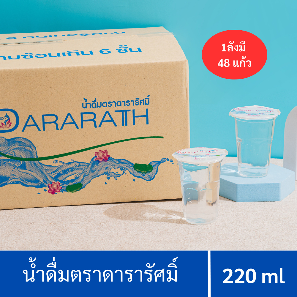 น้ำดื่ม น้ำดื่มสะอาด น้ำดื่มดารารัศมิ์จำนวน 48 แก้ว/ลัง ขนาด 220 ml Dararath drinkingwater (ลังละ 48 แก้ว )