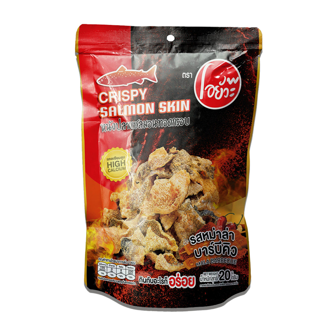 O-YUA โอยั๊วะ หนังปลา แซลม่อน ทอดกรอบ ขนาด 20 กรัม รส หม่าล่า บาร์บีคิว ชิ้นใหญ่ กรอบ เข้มข้ม ไม่คาว กินกับอะไร ก็อร่อย