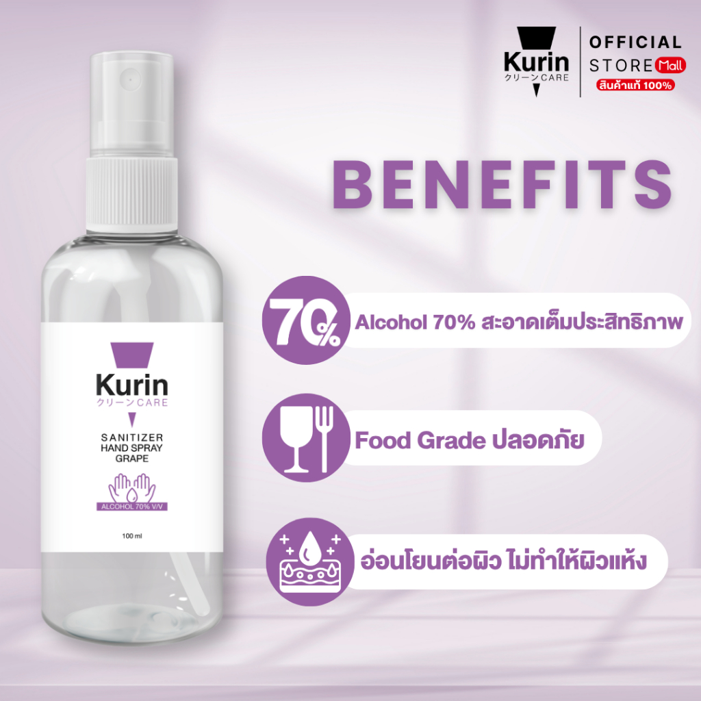 KURIN CARE SANITIZER HAND SPRAY GRAPE (FOODGRADE) 1000ml คูริน แคร์ ซานิไทเซอร์ แฮนด์ สเปรย์ เกรป 1000มล