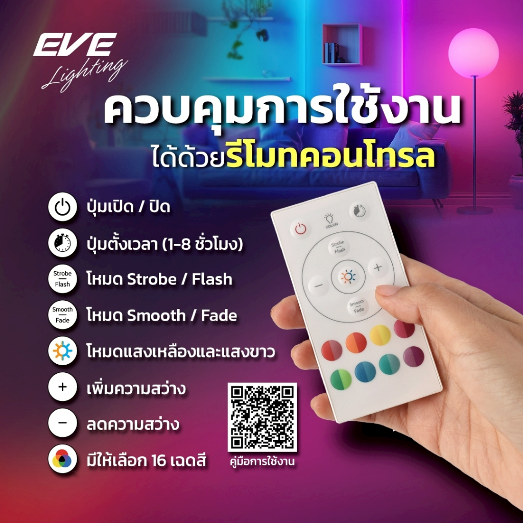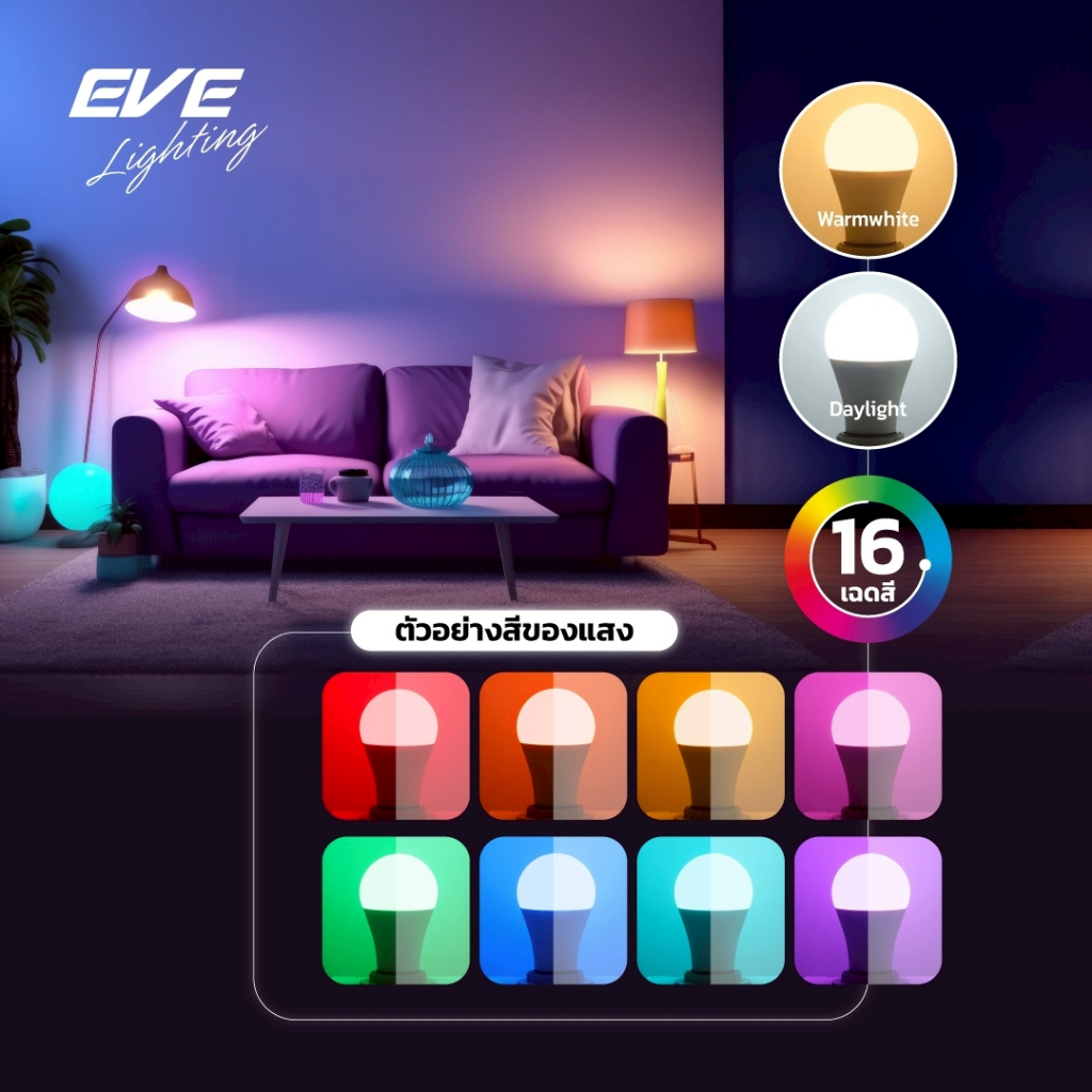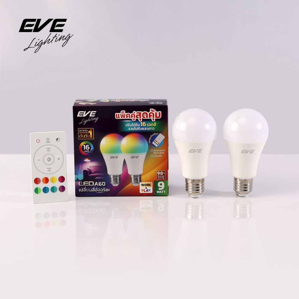 ( แพ็คคู่ ) หลอดแอลอีดี A60 พร้อมรีโมท เปลี่ยนสีได้ 16 เฉดสี ปรับหรี่แสงได้ ขนาด 9W ขั้ว E27