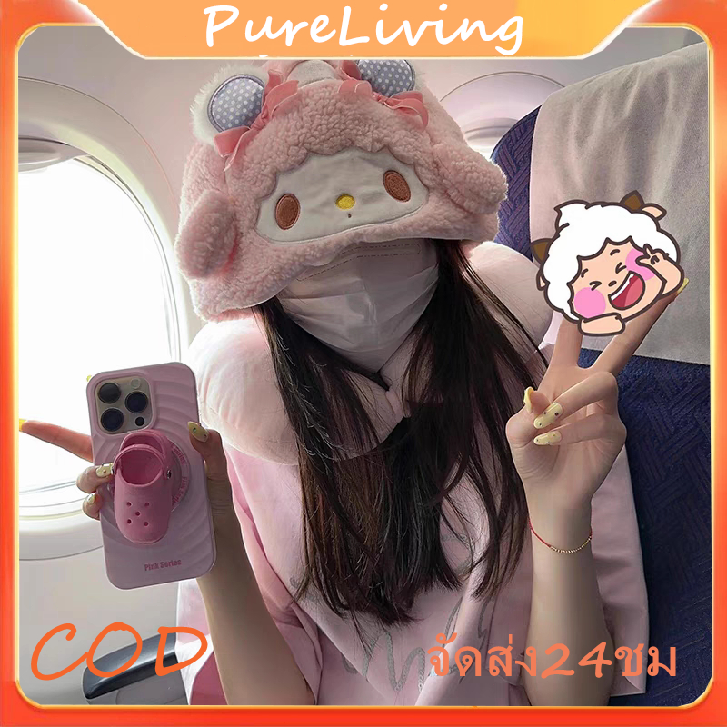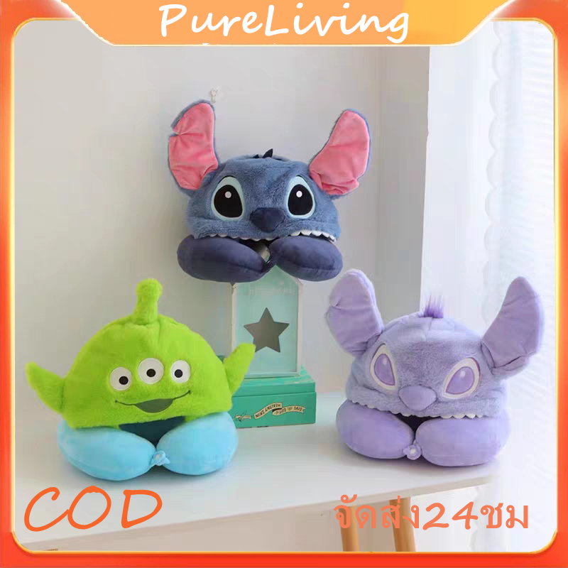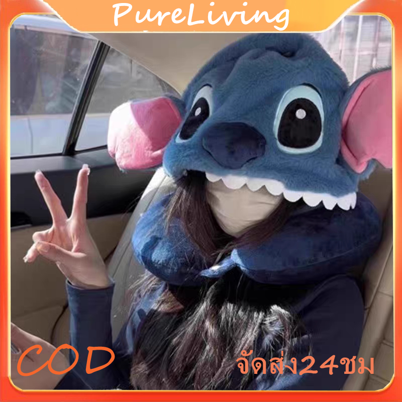 หมอนรองคอพร้อมฮู้ด ลายการ์ตูนที่น่ารัก หมอนรองคอรูปทรงU นุ่มสบายสะดวกพกพา หมอนรองคอลาบการ์ตูน เหมาะสำหรับการงีบหลับ