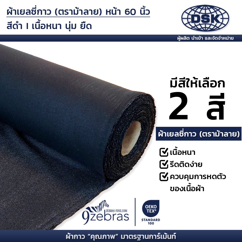 (ยกม้วน) ผ้าเยลซี่กาว ตราม้าลาย (เนื้อหนา) สีอ๊อฟไวท์ สีดำ หน้ากว้าง 60 นิ้ว ยาว 50 เมตร