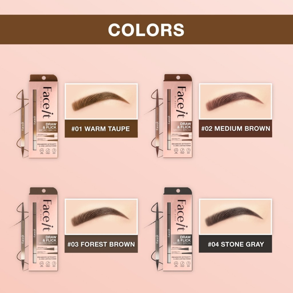 เฟสอิท ดรอว์แอนด์ฟลิค ดินสอเขียนคิ้ว 2หัว ติดทนนาน 0.07g+0.28ml FACE IT Draw Flick Micro Brow