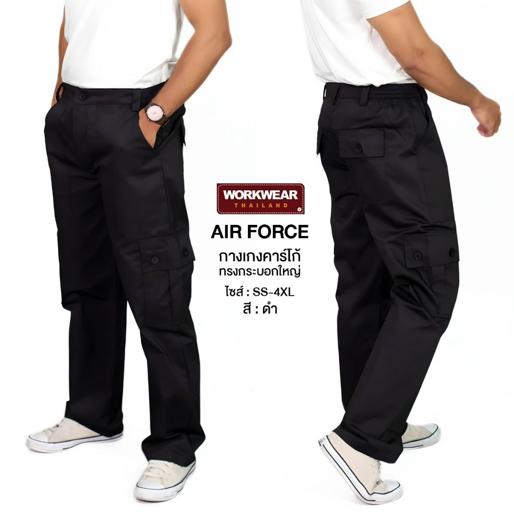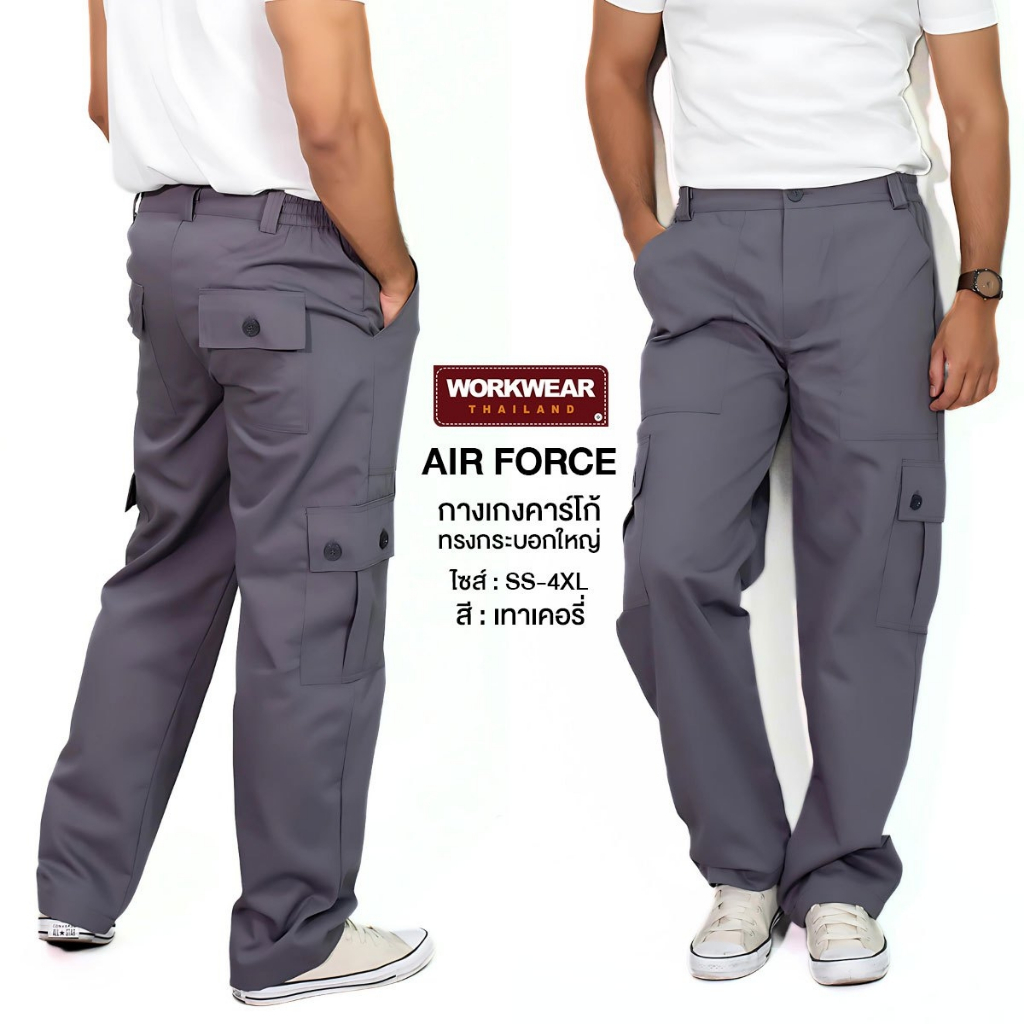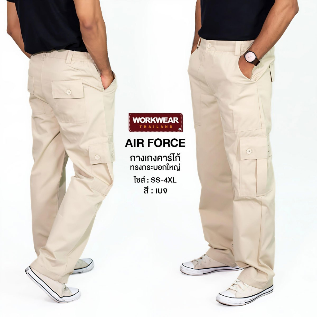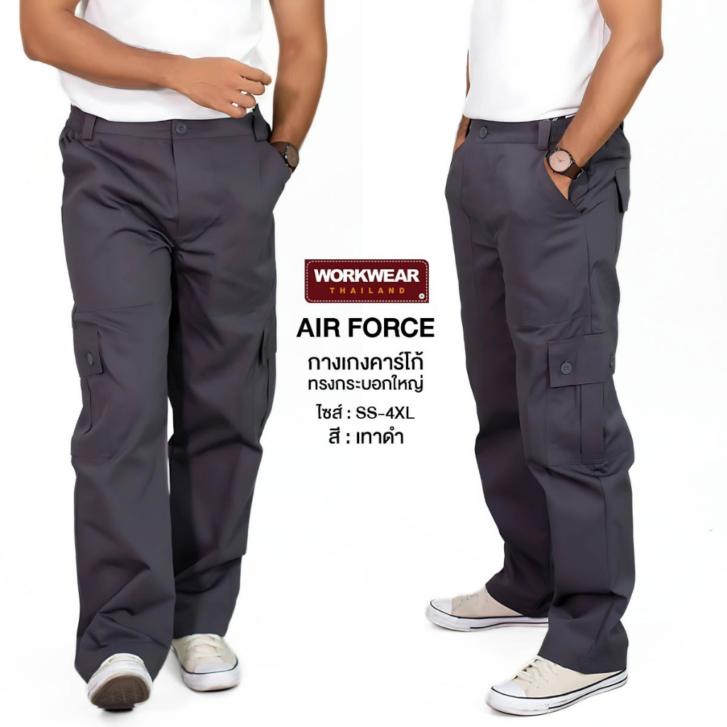 WORKWEAR THAILAND :กางเกงคาร์โก้ รุ่น Airforce ขายาว กระบอกใหญ่ วินเทจ ทำงานช่าง แอร์ ไฟฟ้า ยนต์ ไรเดอร์