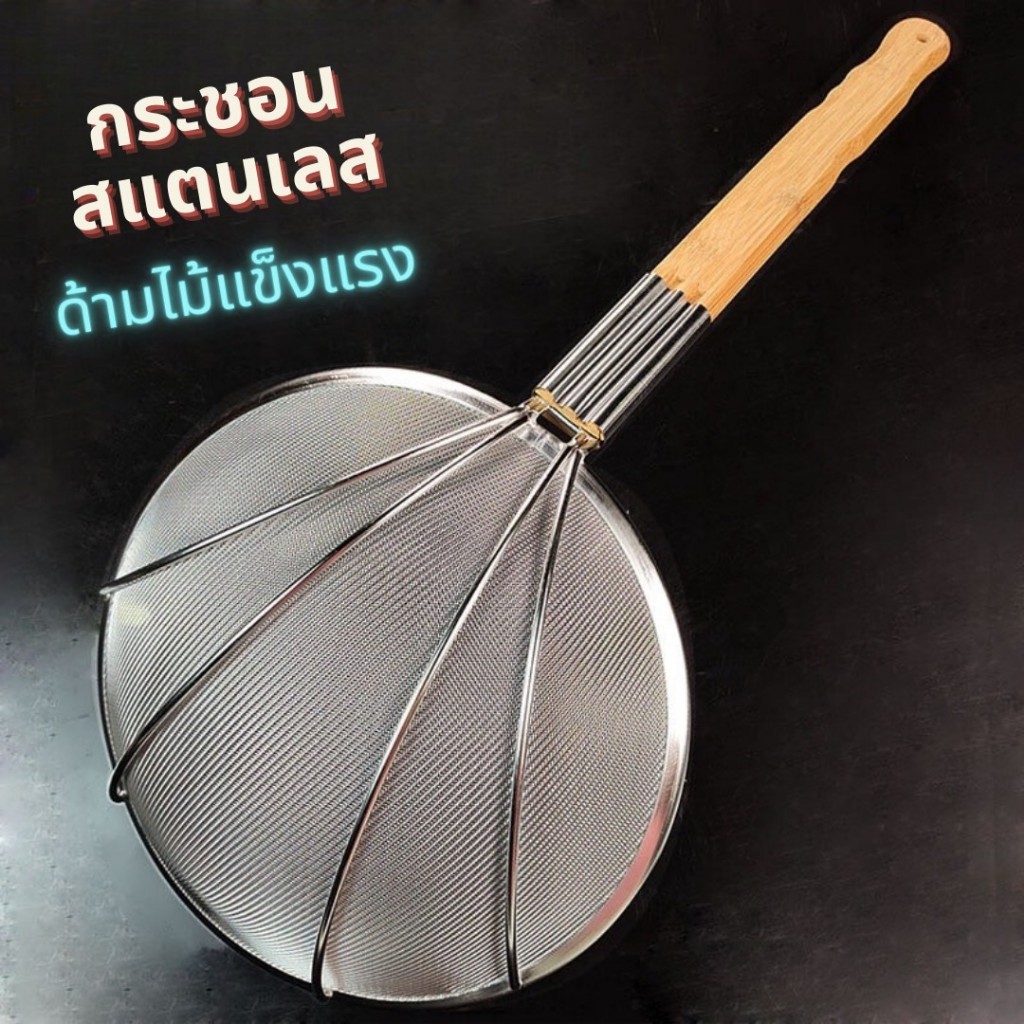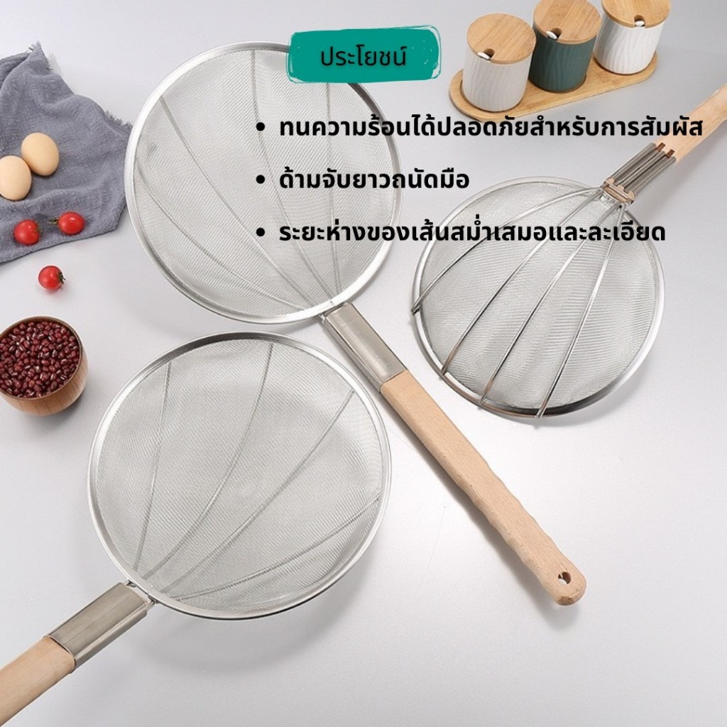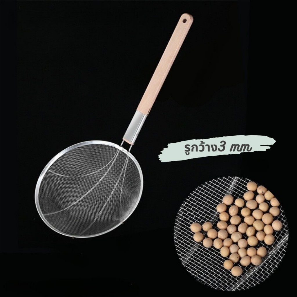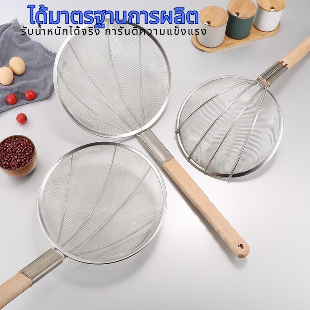 กระชอนสแตนเลสตักของทอด ด้ามไม้ กระชอนกรองอาหาร KCK01
