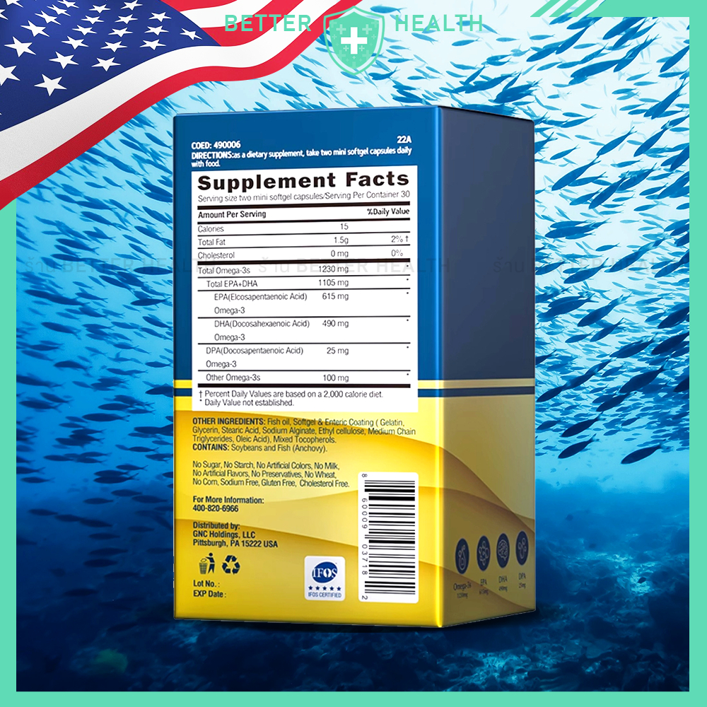 GNC HIGH PURITY 97% FISH OIL OMEGA-3 1230mg Made in USA