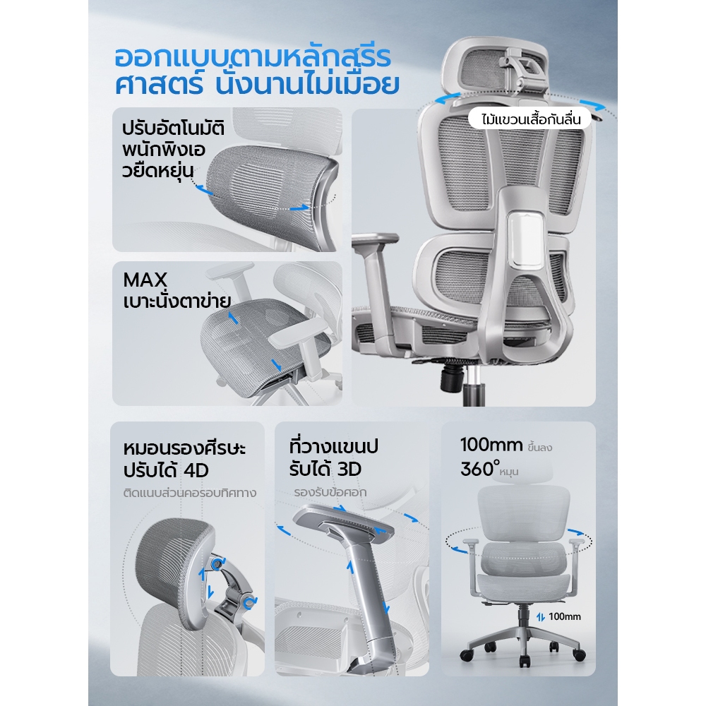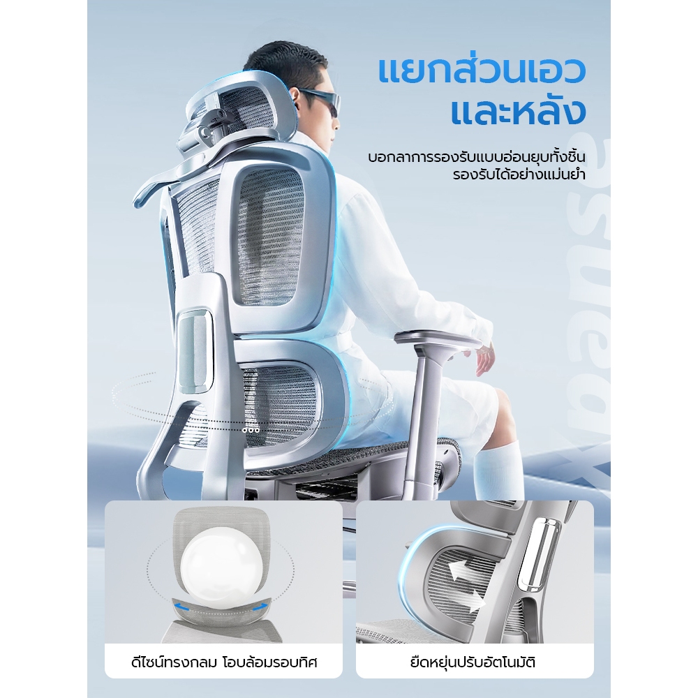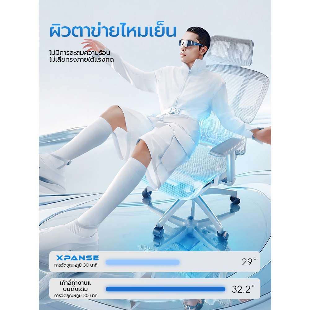 Xpanse LS996 เก้าอี้สำนักงาน เก้าอี้สุขภาพ รองรับสันหลังและเอวอัตโนมัติ ยืดหยุ่นได้ ผ้าตาข่ายไหมน้ำแข็ง นั่งนานไม่ร้อนไม่อับชื้น เก้าอี้เบาเคลื่อนย้ายง่าย Ergonomic Chair