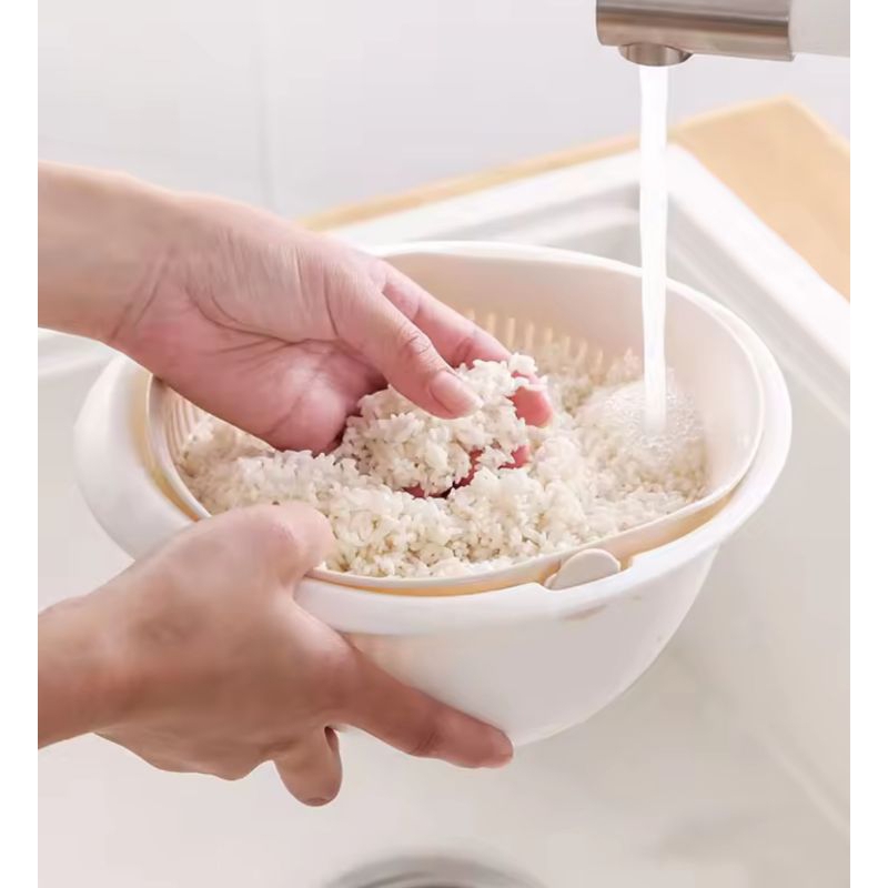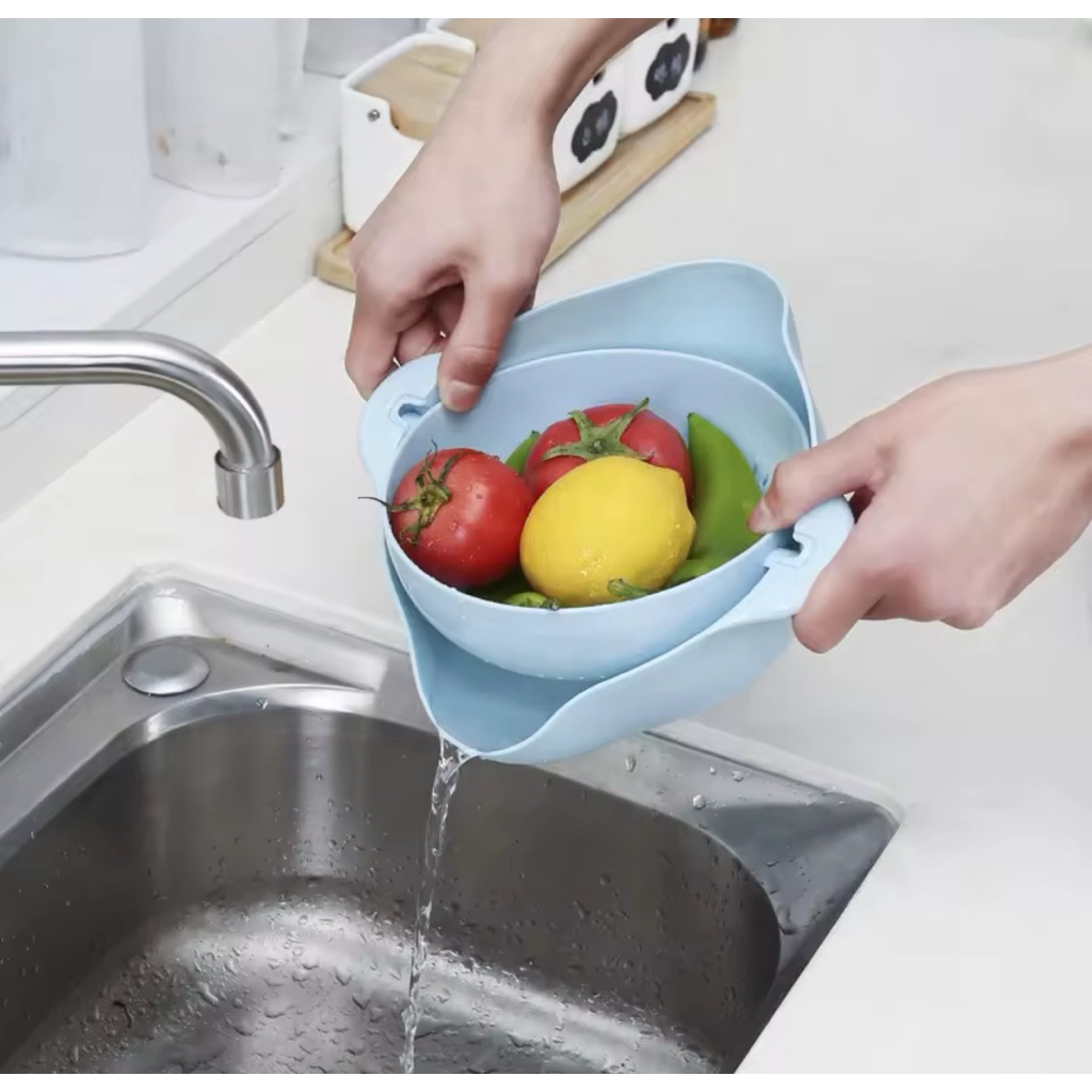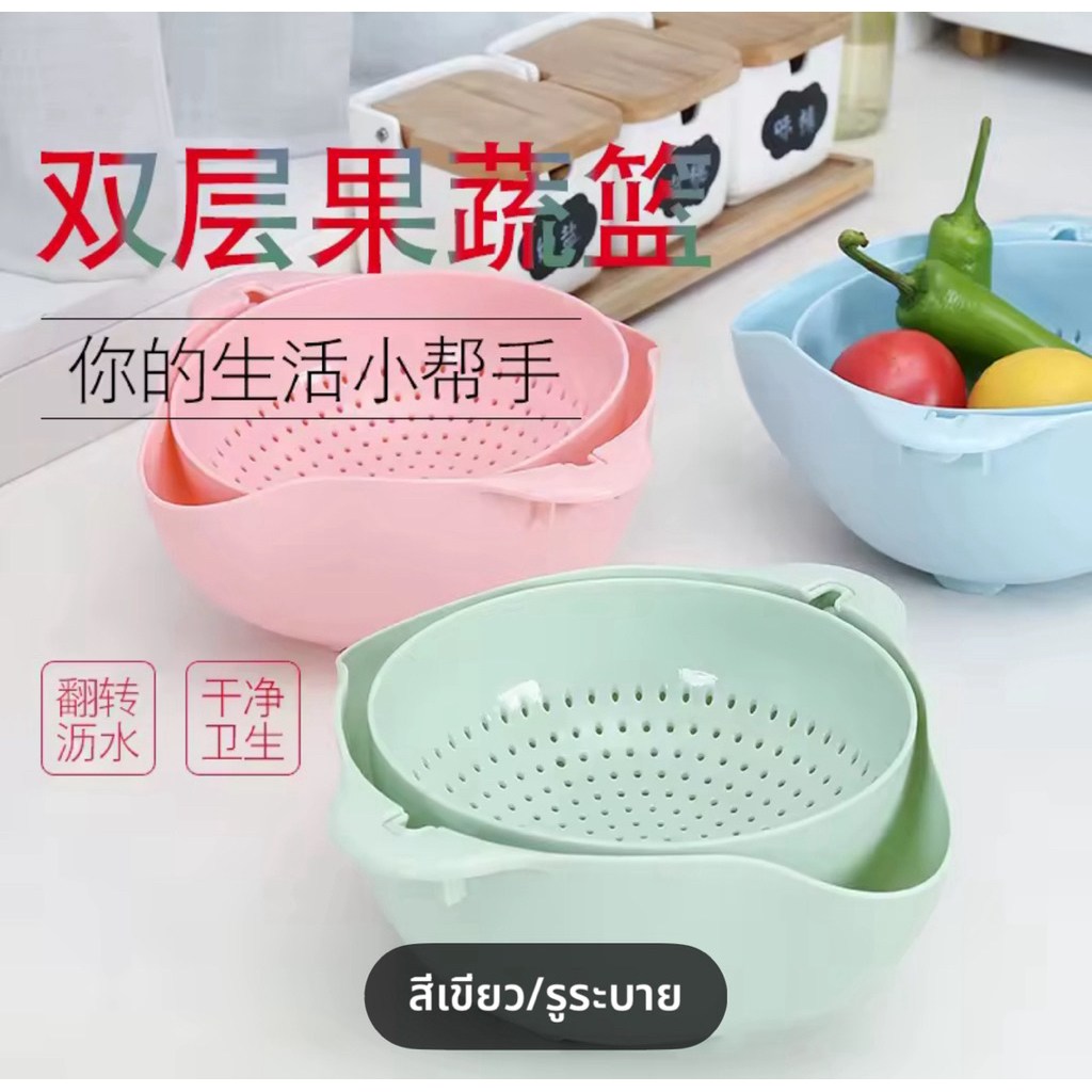 ตะกร้าล้างผัก กะละมังล้างผัก ตะแกรงล้างผัก ชาม 2 ชั้น อุปกรณ์ใช้ในครัว สะดวกสบายในการทำความสะอาดผักผลไม้