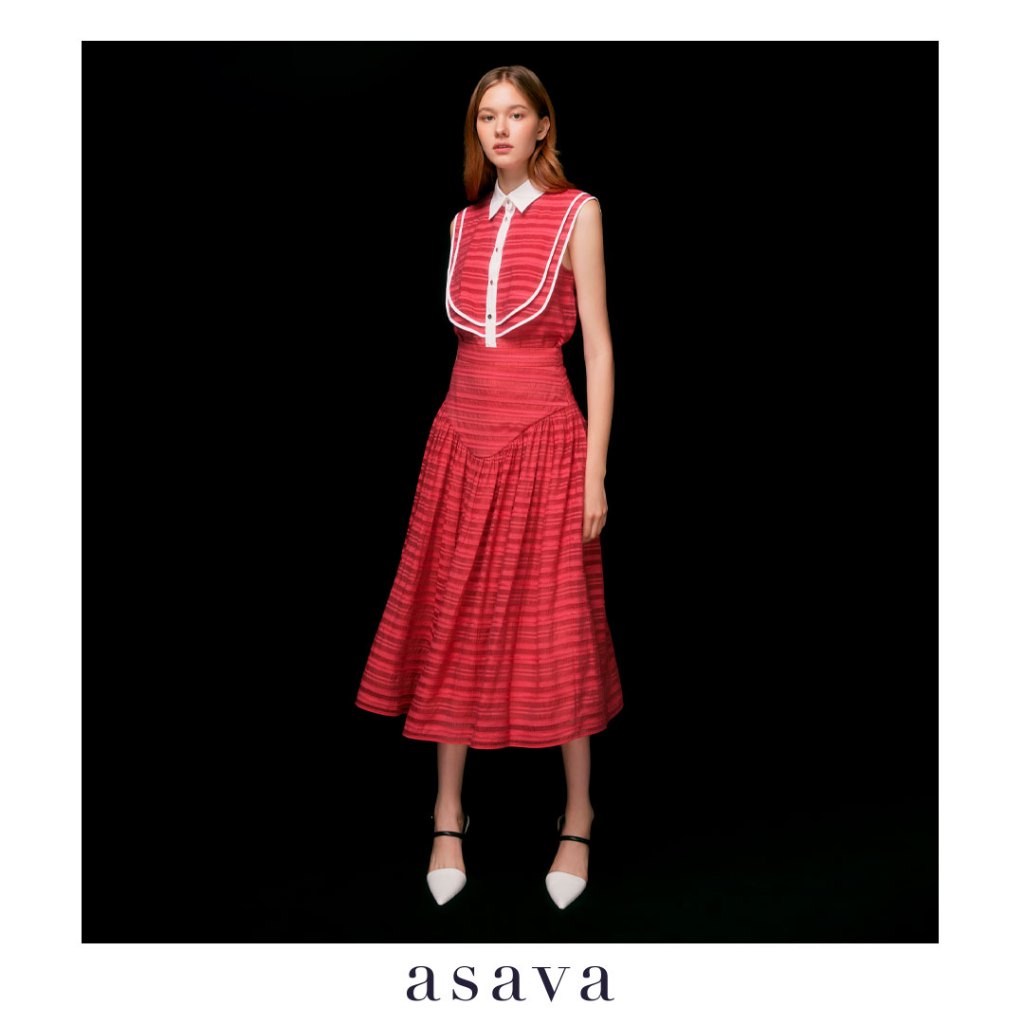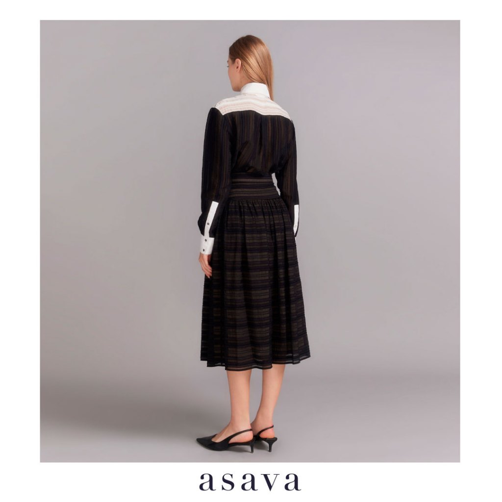 [asava aw23] Florenca Yoke Skirt กระโปรงผู้หญิง ทรงแฟลร์ แต่งดีเทลระบายทรงเคิร์ฟด้านหน้า เอวสูง ซิปข้าง