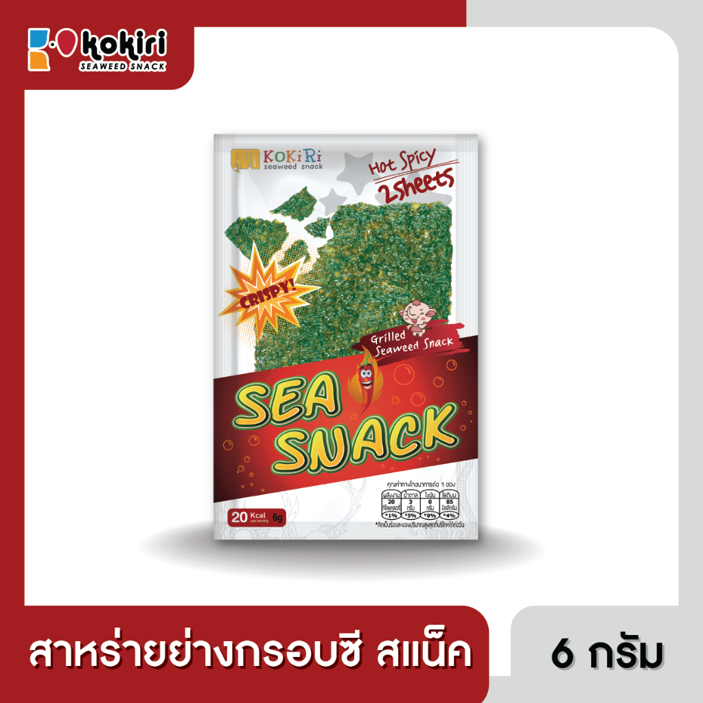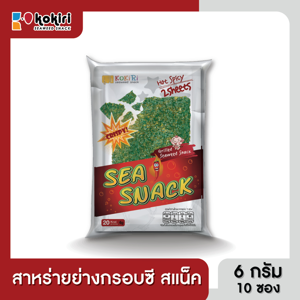 สาหร่ายย่างกรอบ ซี สแน็ค ขนาด 6 กรัม ตราโคคิริ (แพ็ค 10 ซอง) รสดั้งเดิม,รสเผ็ด