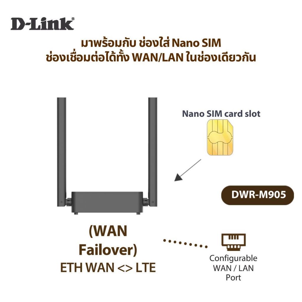 [ ซิมเทพ + Router D-Link ] DWR-M905 N300 Router แบบใส่ซิม รองรับ 4G/LTE ทุกเครือข่ายในไทย เราเตอร์ใส่ซิม Alot