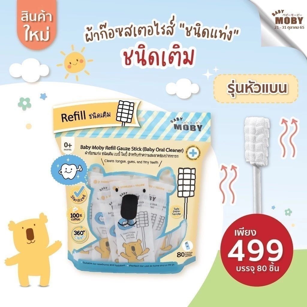 [32 ห่อ/ชุด] Baby Moby ผ้าก๊อตเช็ดลิ้นเด็กแรกเกิด สำลีเช็ดลิ้นทารก ผ้าก๊อซเช็ดฟัน ใช้ง่าย ปลอดภัย