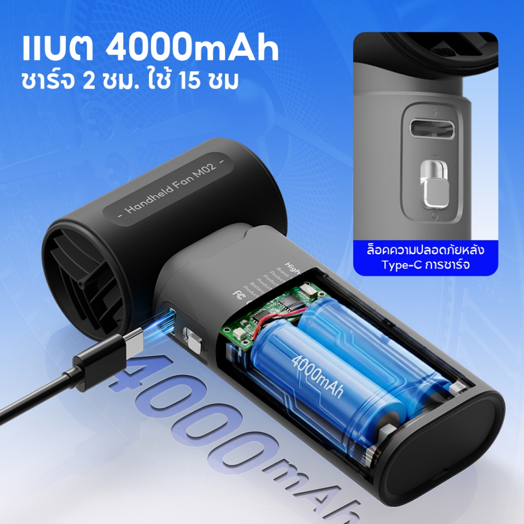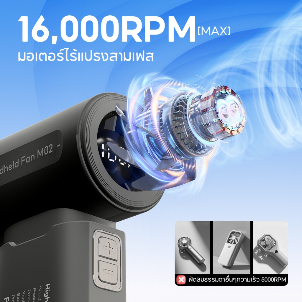 Yodevoe M02 มินิแรง พัดลมพกพา ขนาดเล็ก แบบพกพา หน้าจอ LED 4000mAh แบตเตอรี่ทนทาน ใช้งานได้ 15 ชั่วโมง