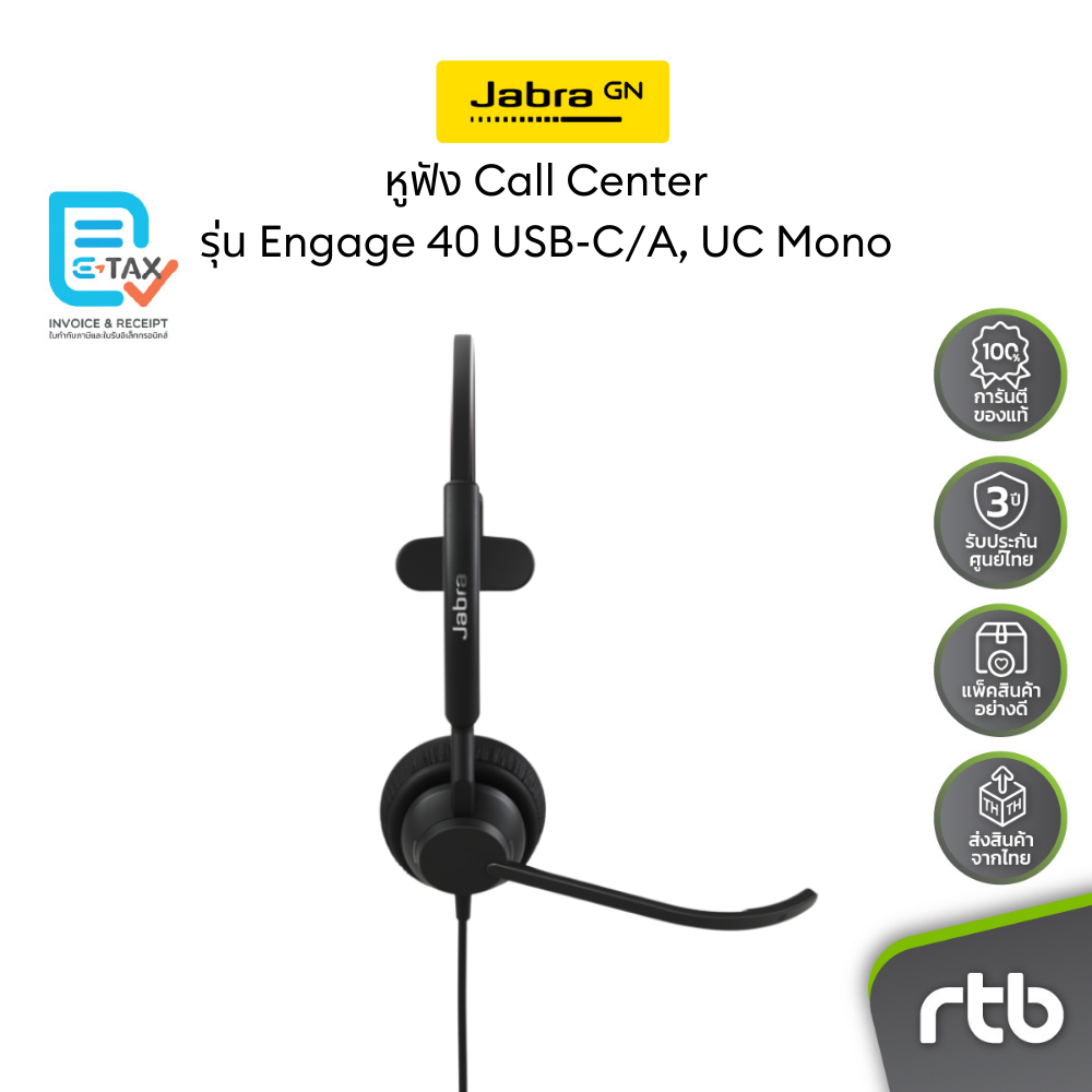 Jabra Engage 40 (Inline Link) USB-C/A, UC Mono หูฟังคอลเซ็นเตอร์ Wired Headset for Call Center by RTB